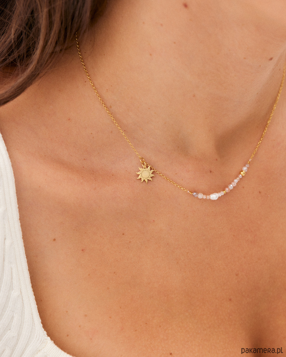 Słonce i mix kamieni naturalnych: kamień słoneczny i księżycowy, perła