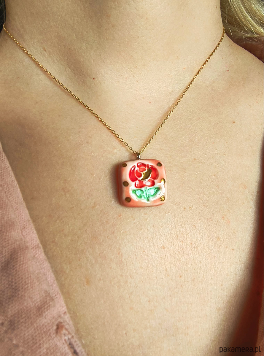 Naszyjnik wykonałam własnoręcznie ze szlachetnej porcelany, zdobiłam szkliwem oraz 24-karatowym złotem.