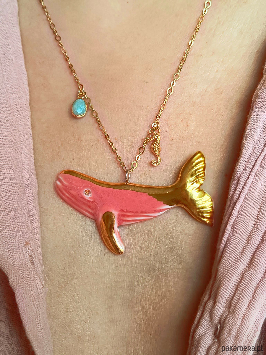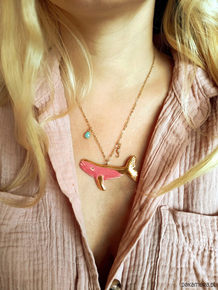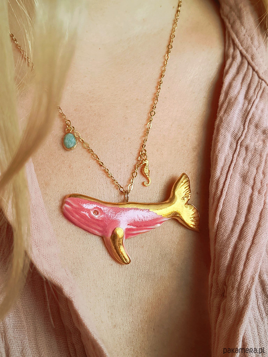 Naszyjnik pozłacany Róźowy Wieloryb Kolekcja Parian