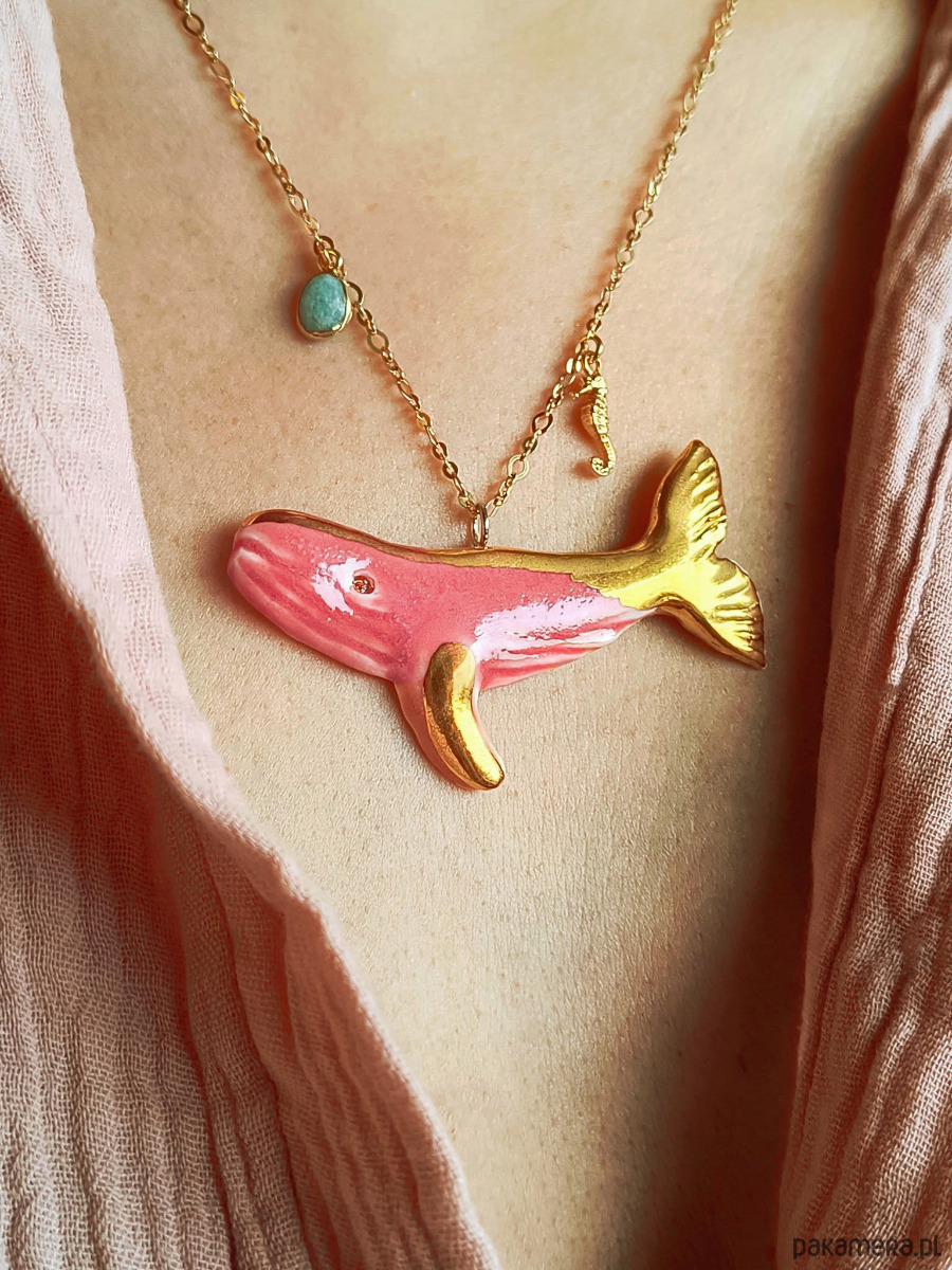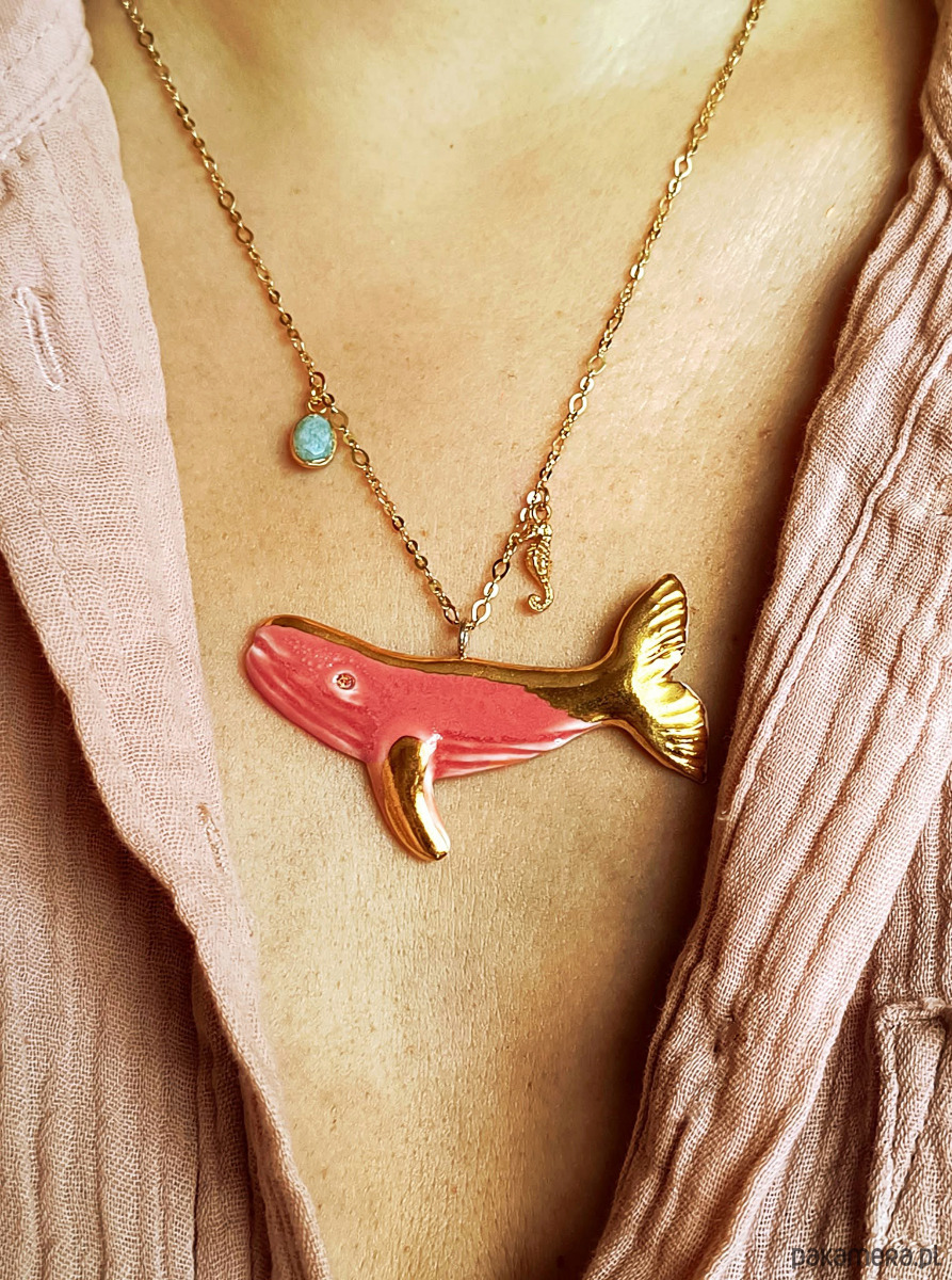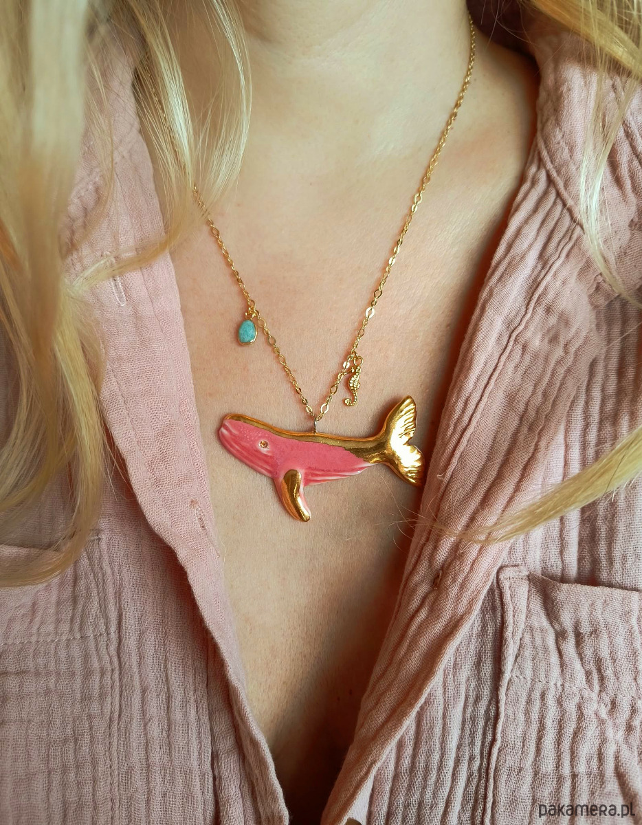 Naszyjnik pozłacany Róźowy Wieloryb Kolekcja Parian