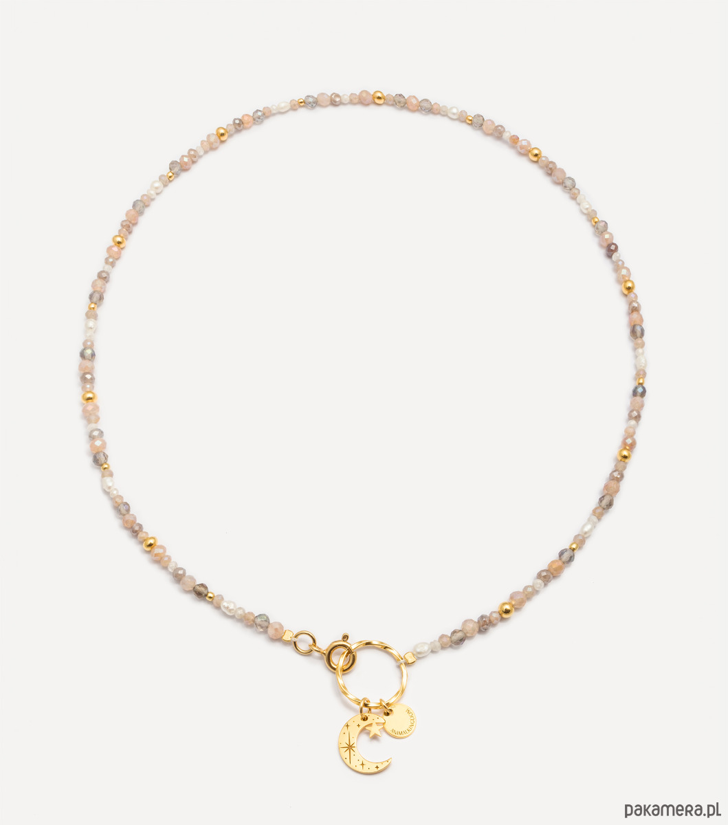 Spersonalizuj swój naszyjnik, wybierając symboliczną zawieszkę w kształcie księżyca lub słońca oraz swój ulubiony mix naturalnych kamieni.