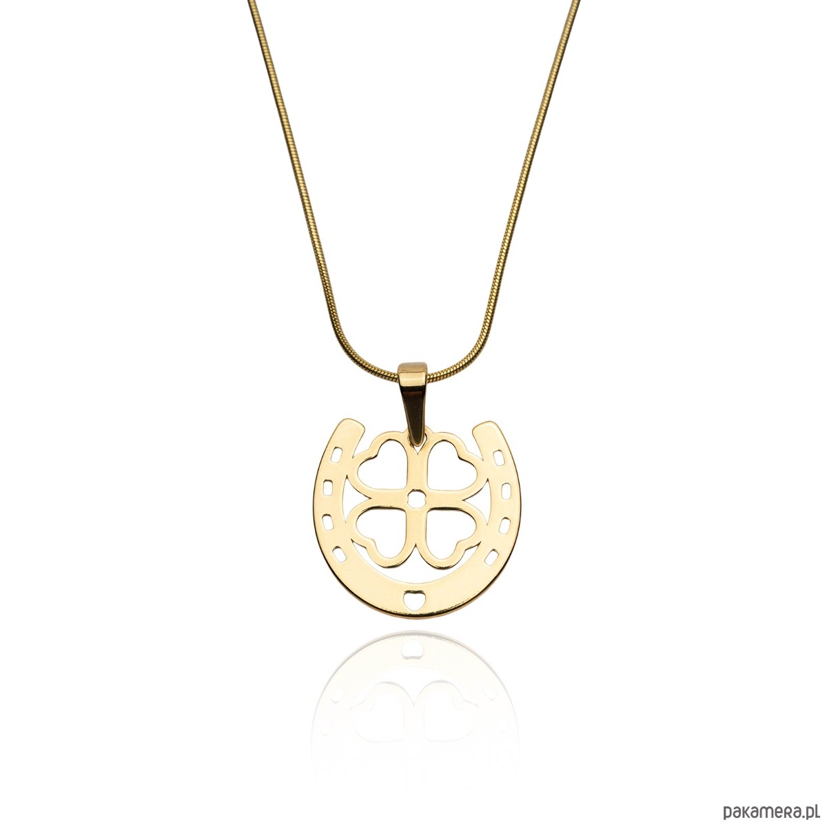 Pozłacany srebrny naszyjnik z motywem podkowy i czterolistnej koniczyny to biżuteria łącząca dwa powszechne międzynarodowe symbole szczęścia, stanowiąca popularny dodatek i pomysł na prezent,