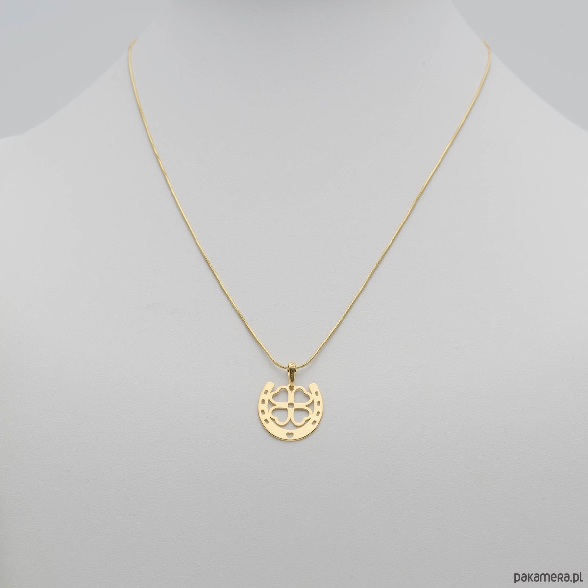 Naszyjnik pozłacany ze srebra 925- podkówka z czterolistną koniczyną