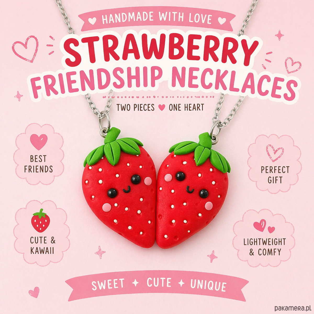 🍓 Uroczy ręcznie robiony naszyjnik przyjaźni w stylu kawaii!
