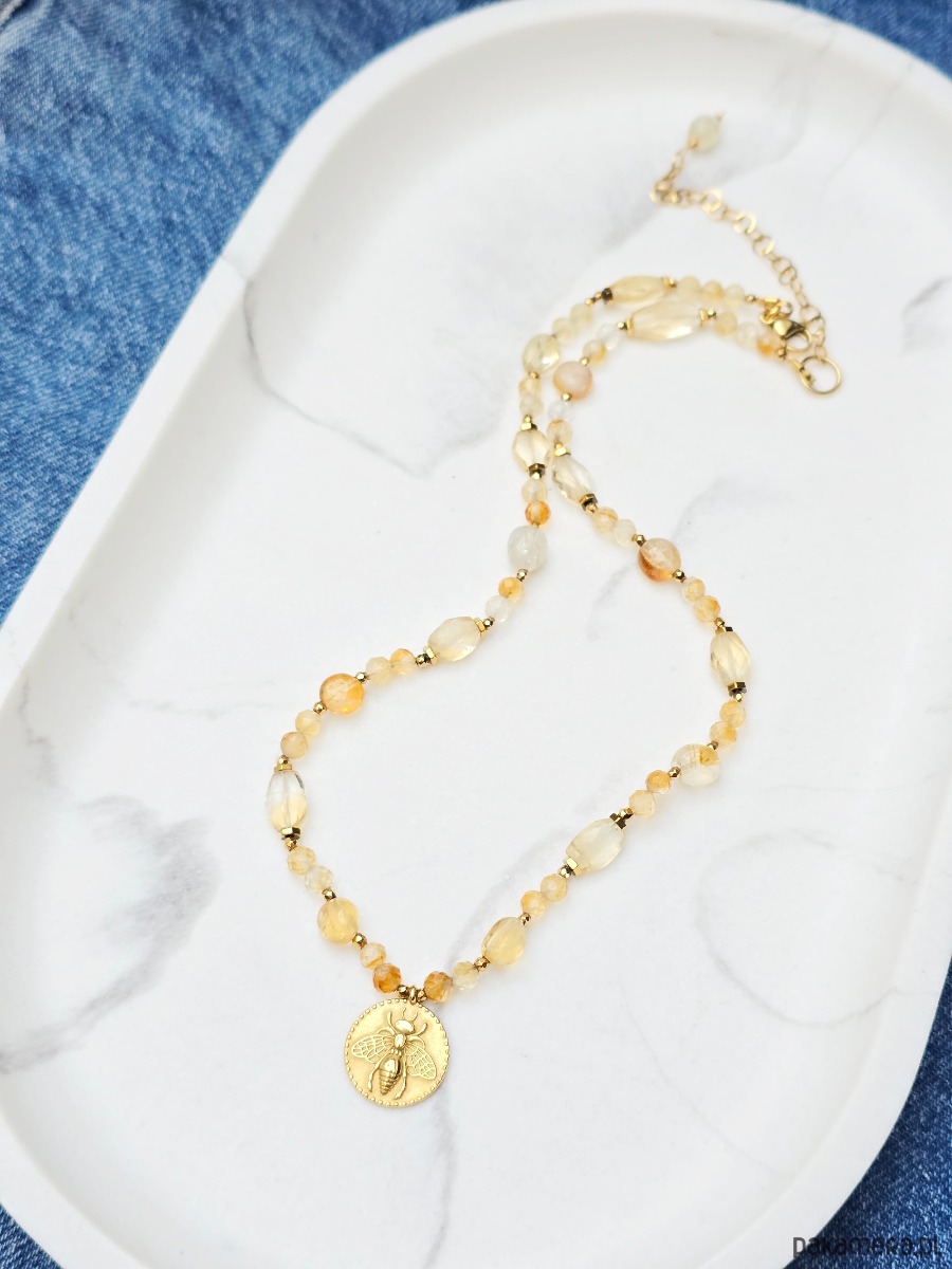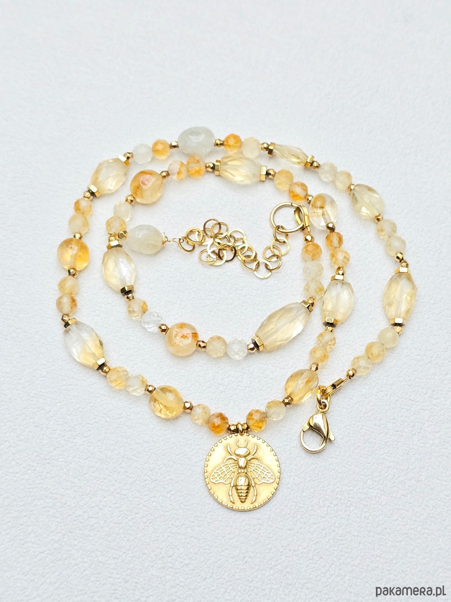 Piękny naszyjnik z cytrynu i złoconego hematytu.