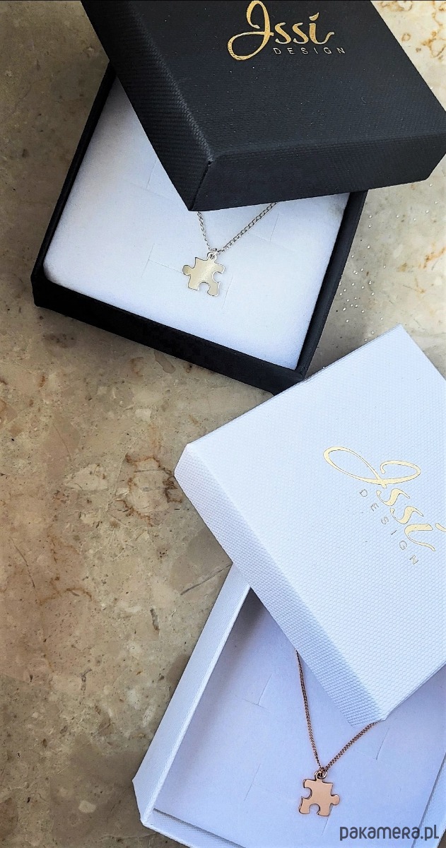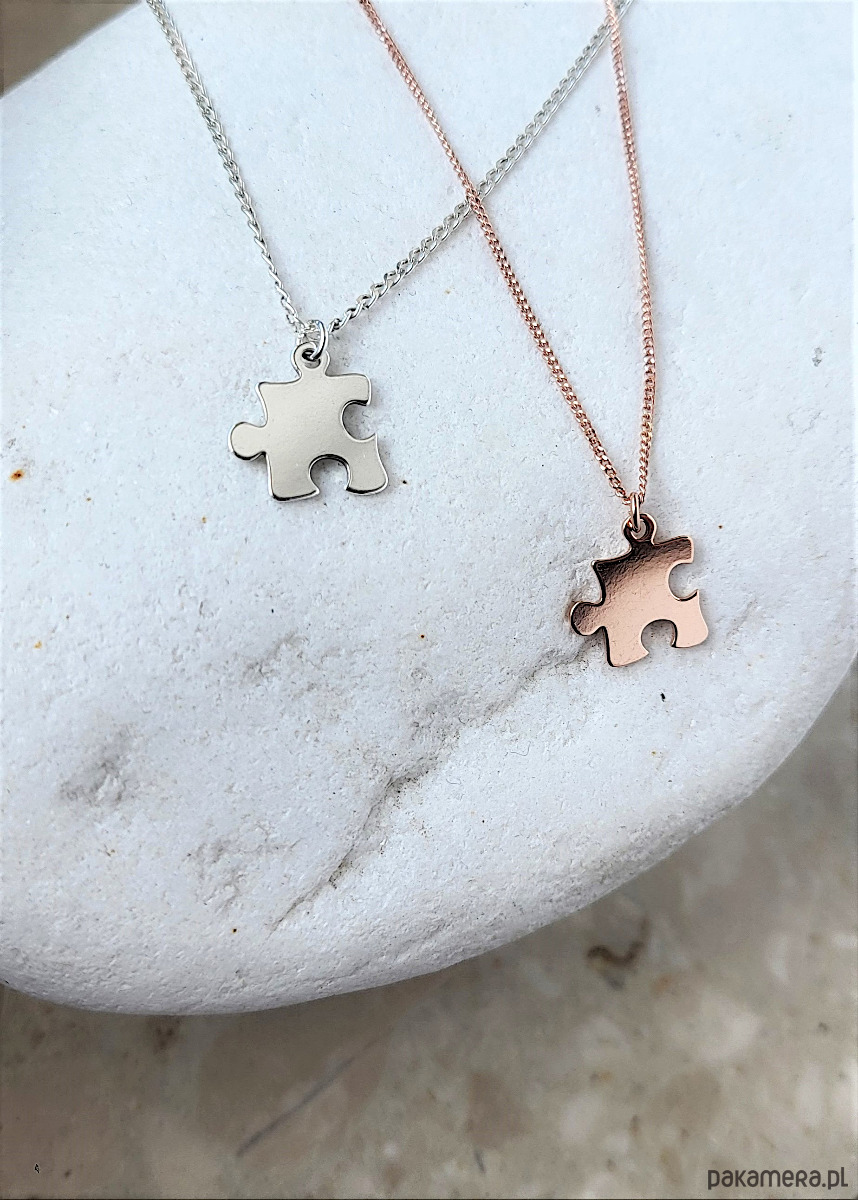 Naszyjnik z zawieszką w kształcie puzzla, wykonany ze srebra próby 925