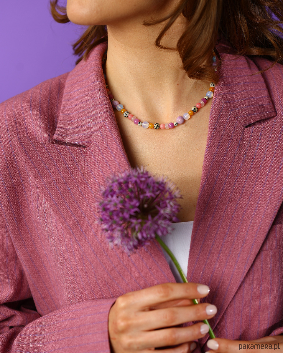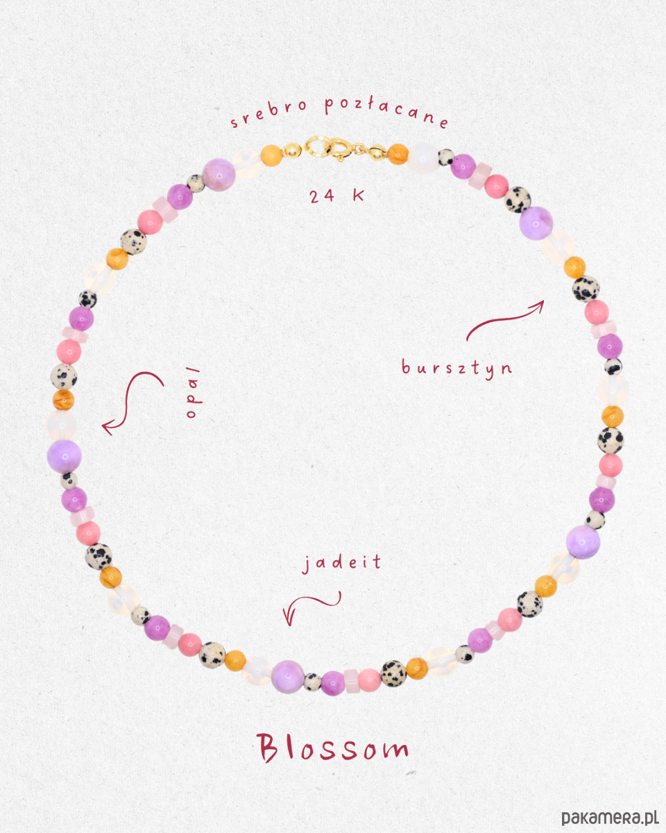 Pełen koloru, lekkości i pozytywnej energii - naszyjnik Blossom to biżuteria, która natychmiast ożywia stylizację i dodaje jej wyjątkowego charakteru. Pastelowe odcienie różu, fioletu i ciepłych tonów bursztynu tworzą kompozycję inspirowaną kwitnącą naturą.