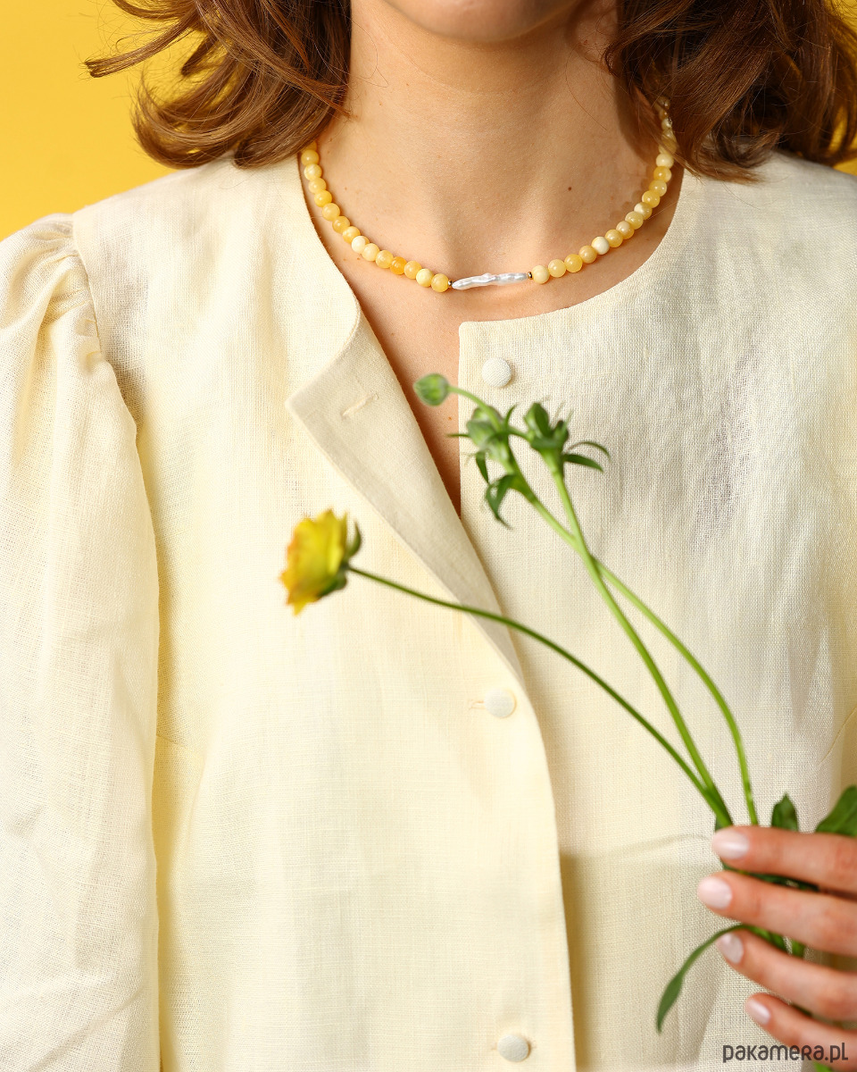 Ciepły, świetlisty i pełen naturalnego blasku - naszyjnik Honey to biżuteria inspirowana odcieniami miodu i promieniami słońca. Złociste, miękkie tonacje tworzą harmonijną kompozycję, która przyciąga uwagę swoją prostotą i elegancją.