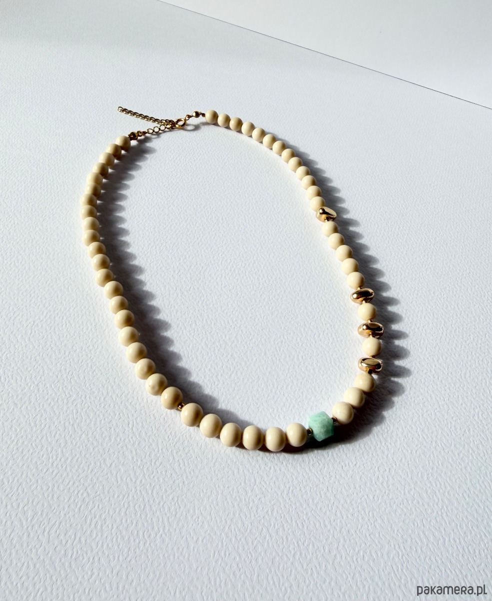 Naszyjnik z kamieniem rzecznym, hematytem i amazonitem.