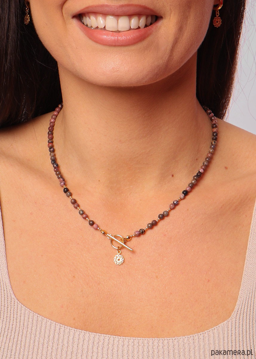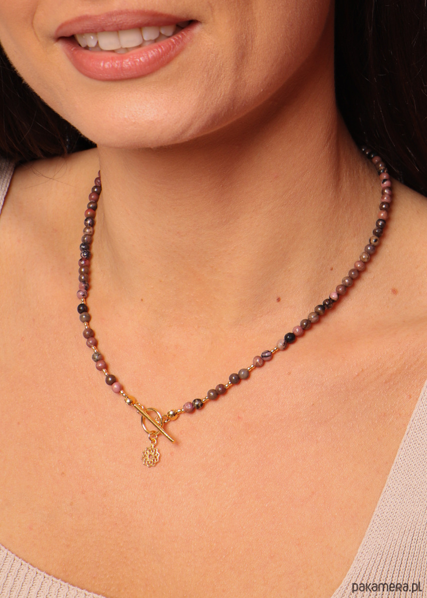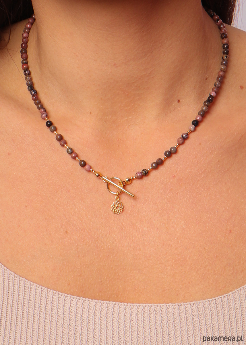 Cechy produktuKamień: rodonit Wielkość kamieni: ok. 4 mmKolor: różowy, beżowy, brązowy Wykończenie: srebro pr. 925, pozłacane 24k złotemMożliwość wyboru zawieszki Idealny na prezentWłaściwość kamieniaRodonit to kamień spokoju, rozsądku i ukojenia. Kamień ten wzmacnia wiarę w siebie i pozwala zwiększyć poczucie własnej wartości. Pomaga wybaczać oraz znaleźć zrozumienie dla innych. Jest też jednym z kamieni miłości.Naszyjnik będzie idealnym pomysłem na prezent. Biżuteria, ręcznie wykonywana z rodonitu wpisuje się w obecne trendy, dzięki czemu możesz mieć pewność, że zachwyci obdarowaną osobę. Nasz naszyjnik z kamienia rodonit jest uniwersalnym, eleganckim elementem ubioru, który obłędnie wyglądać będzie w zestawieniu z każdą stylizacją. OpakowanieNaszyjnik zapakowany będzie w minimalistyczne, granatowe pudełeczko ze złotym logo. Wewnątrz pudełeczka znajdziesz białą wkładkę z nazwą kamienia oraz jego wyjątkowymi właściwościami. Dbaj o biżuterię. Unikaj kontaktu z wodą, detergentami i kosmetykami.