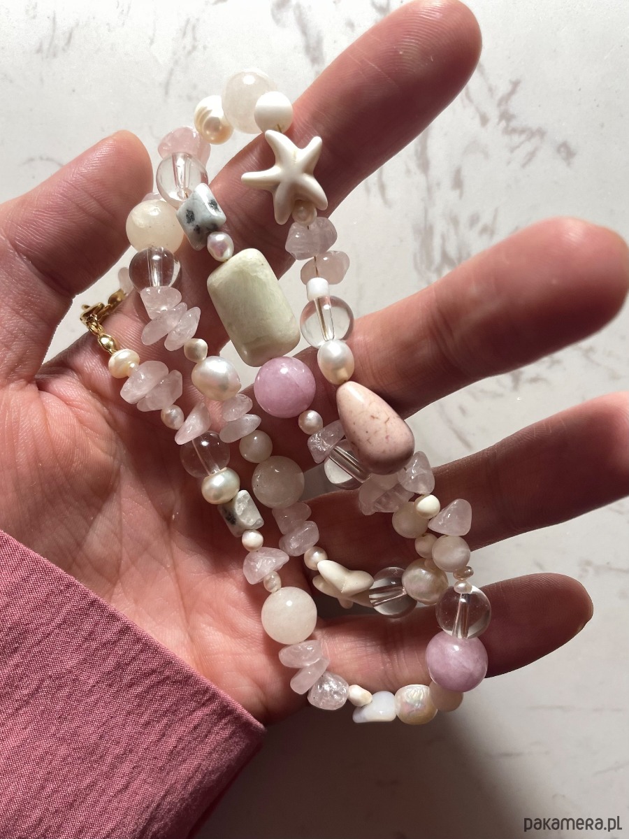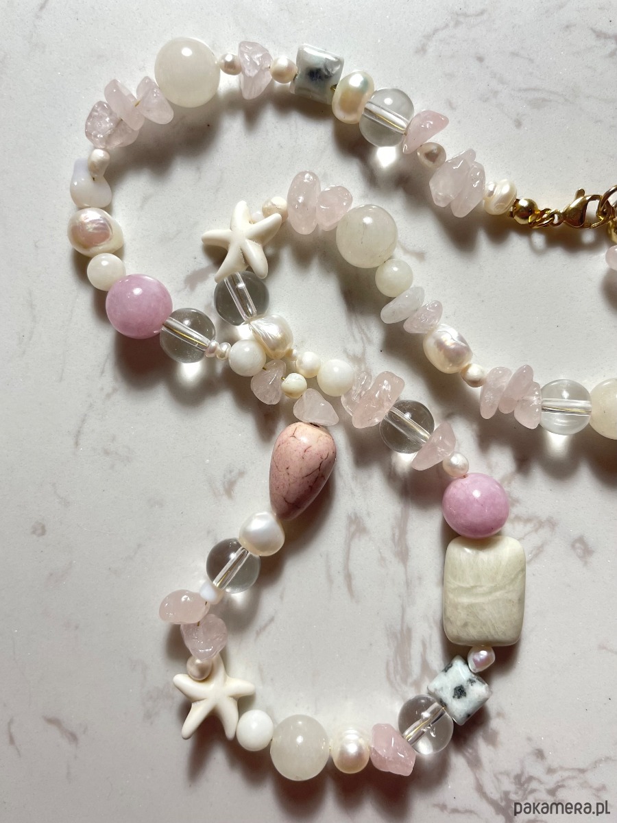 Naszyjnik ROSE - wykonany ze szklanych koralików, pereł oraz kamieni naturalnych 🌸