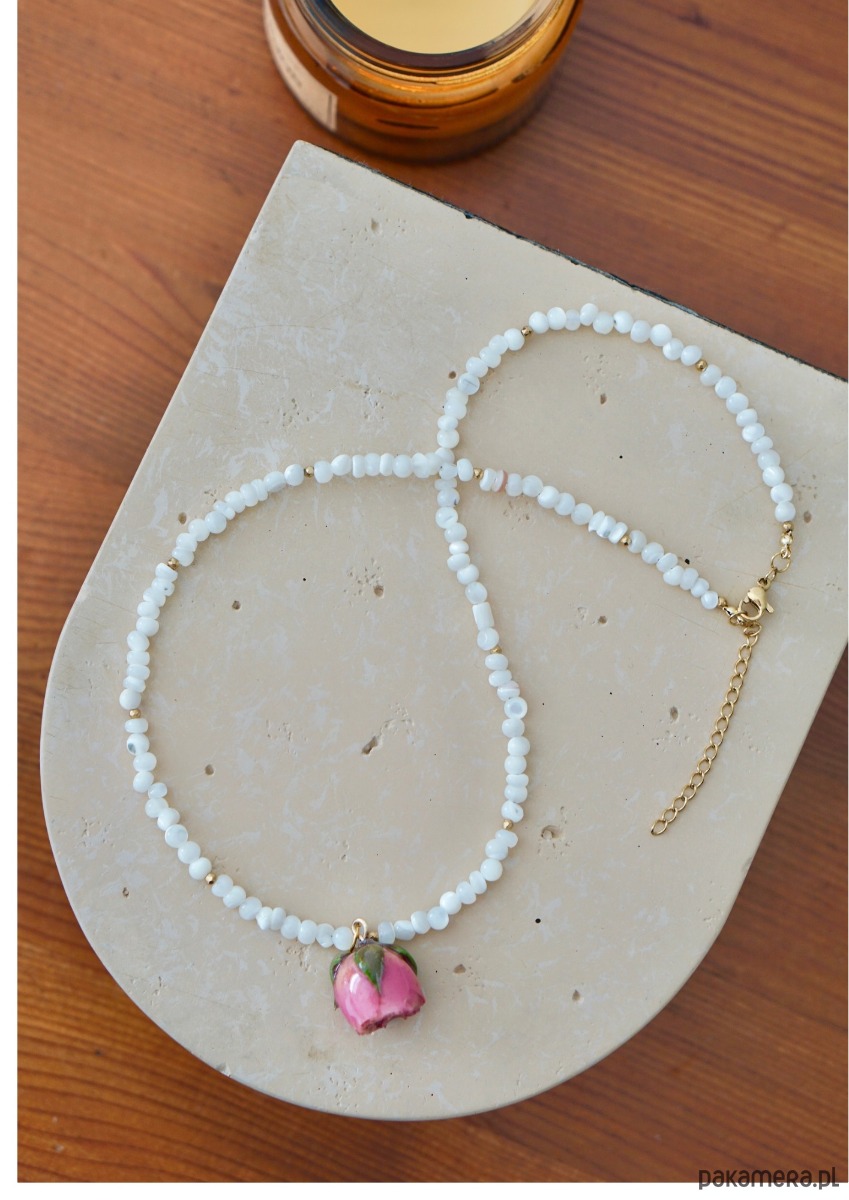 Naszyjnik różą i masą perłową