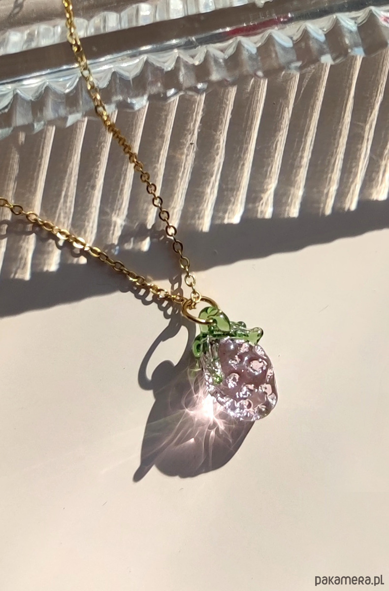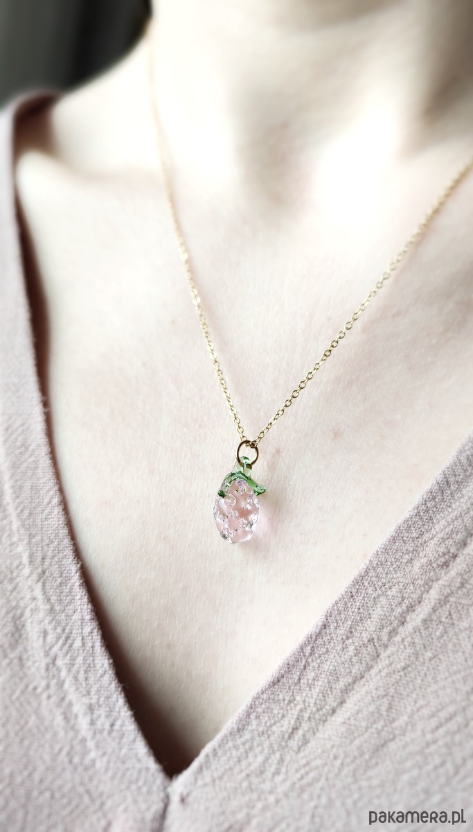 Naszyjnik różowa poziomka ze szkła "Sweets"