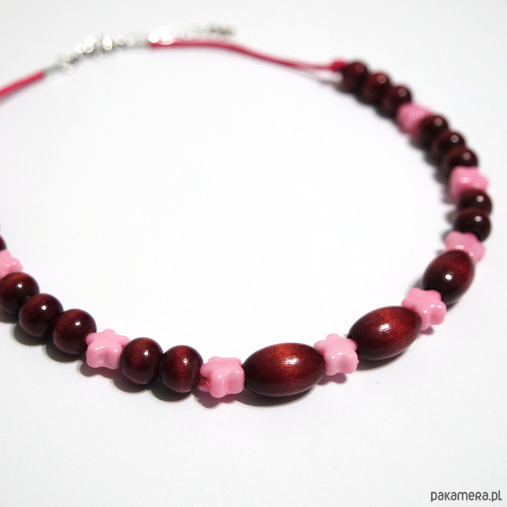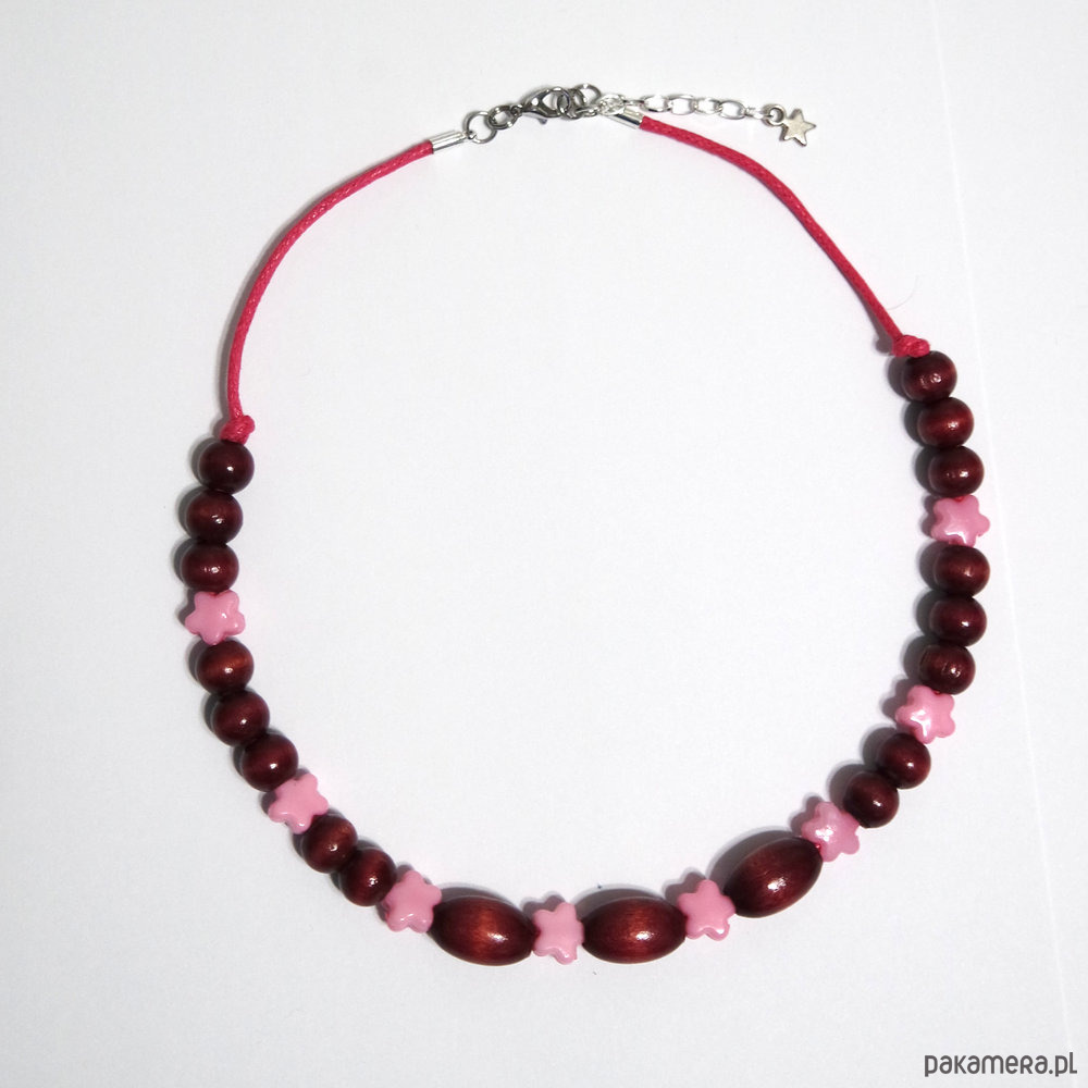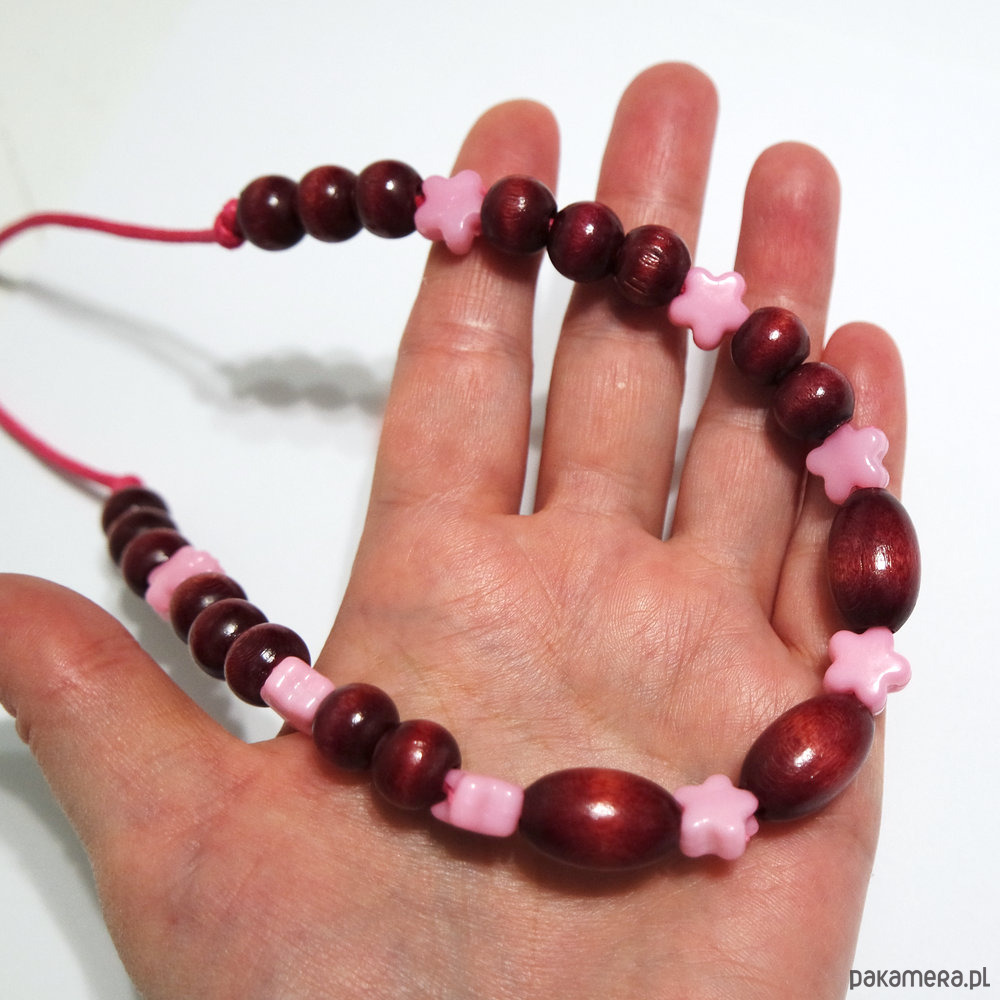 Wykonany z koralików akrylowych i drewnianych oraz sznureczka woskowanego.