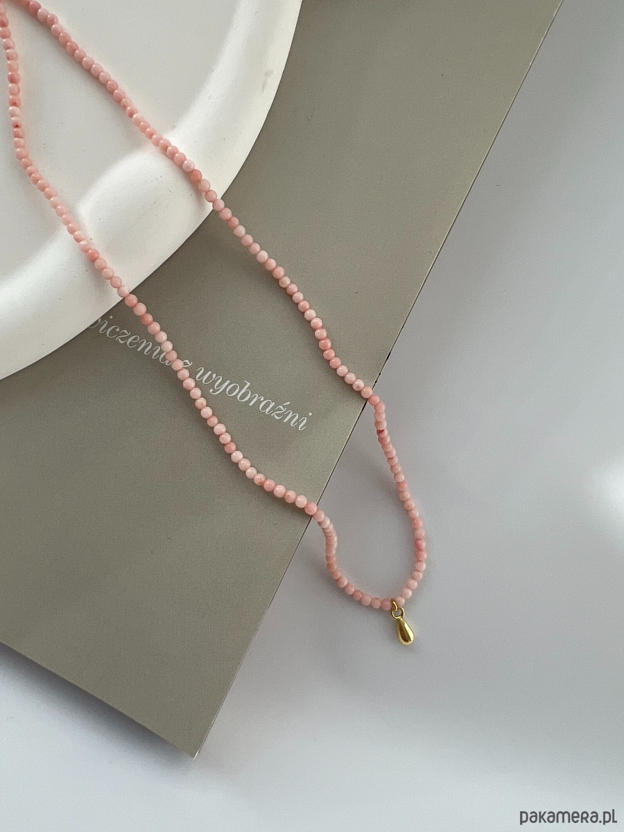 Naszyjnik z kamieni ma około 40 cm + 5cm łańcuszka, by móc sobie regulować jego obwód.