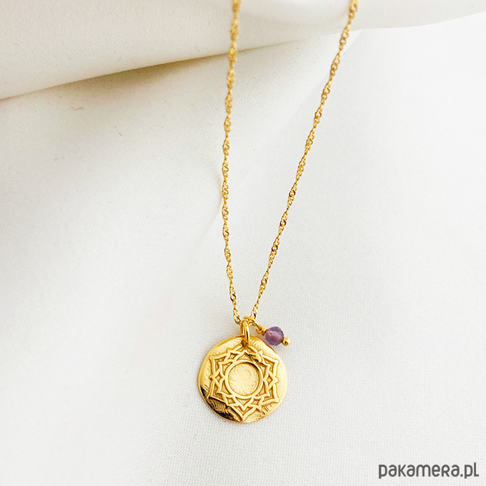 Delikatny naszyjnik z zawieszką symbolem Czakrą KORONY . Całość wykonana ze srebra 925 pokrytego 24 karatowym złotem.