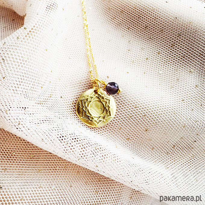 Delikatny naszyjnik z zawieszką symbolem Czakrą KORONY . Całość wykonana ze srebra 925 pokrytego 24 karatowym złotem.