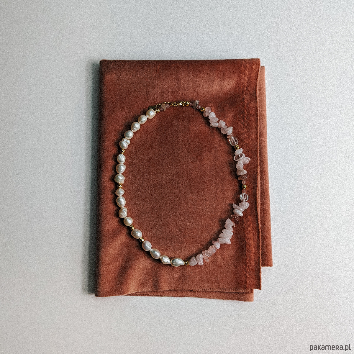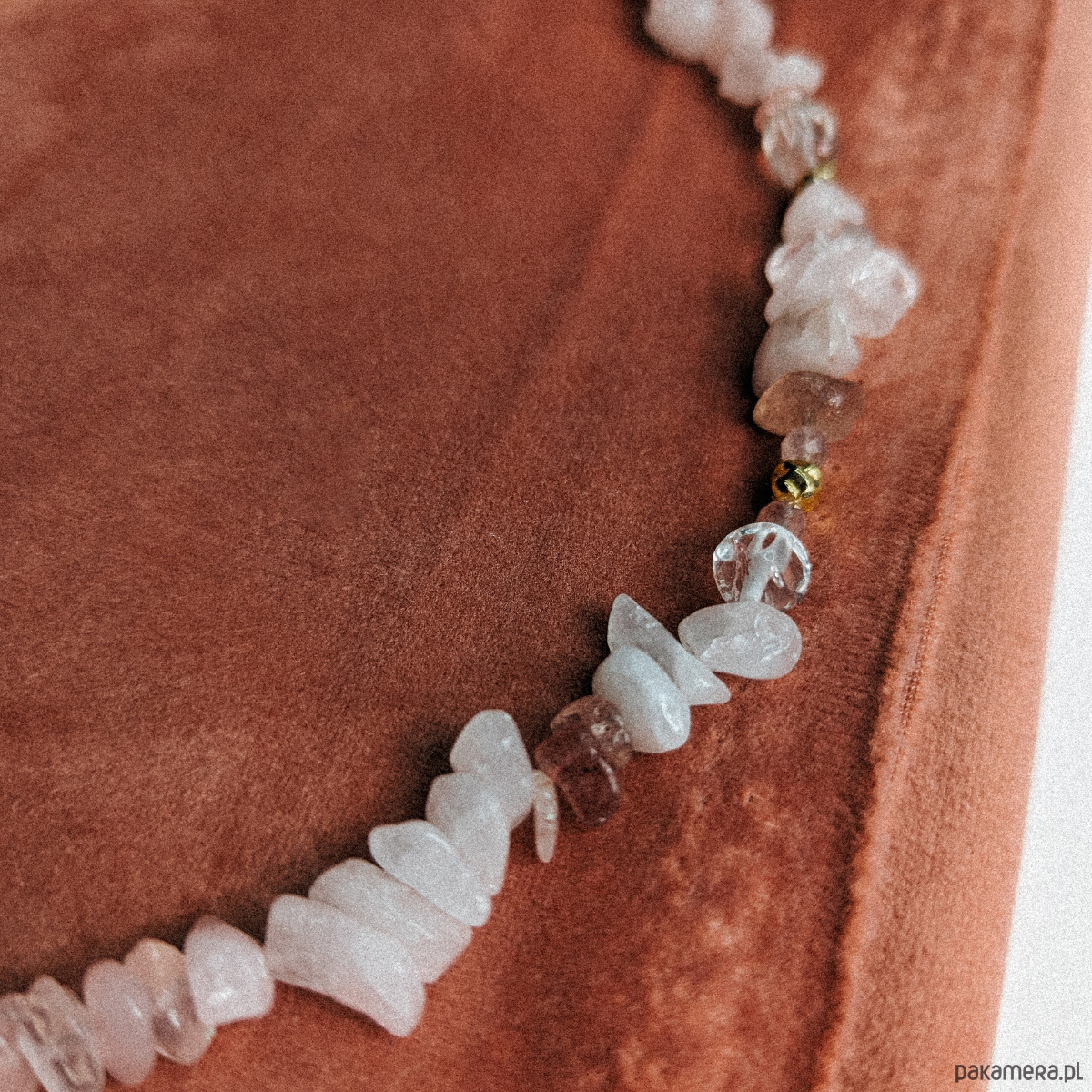 - Rodzaj kamienia: kwarc różowy, kryształ górski, perła