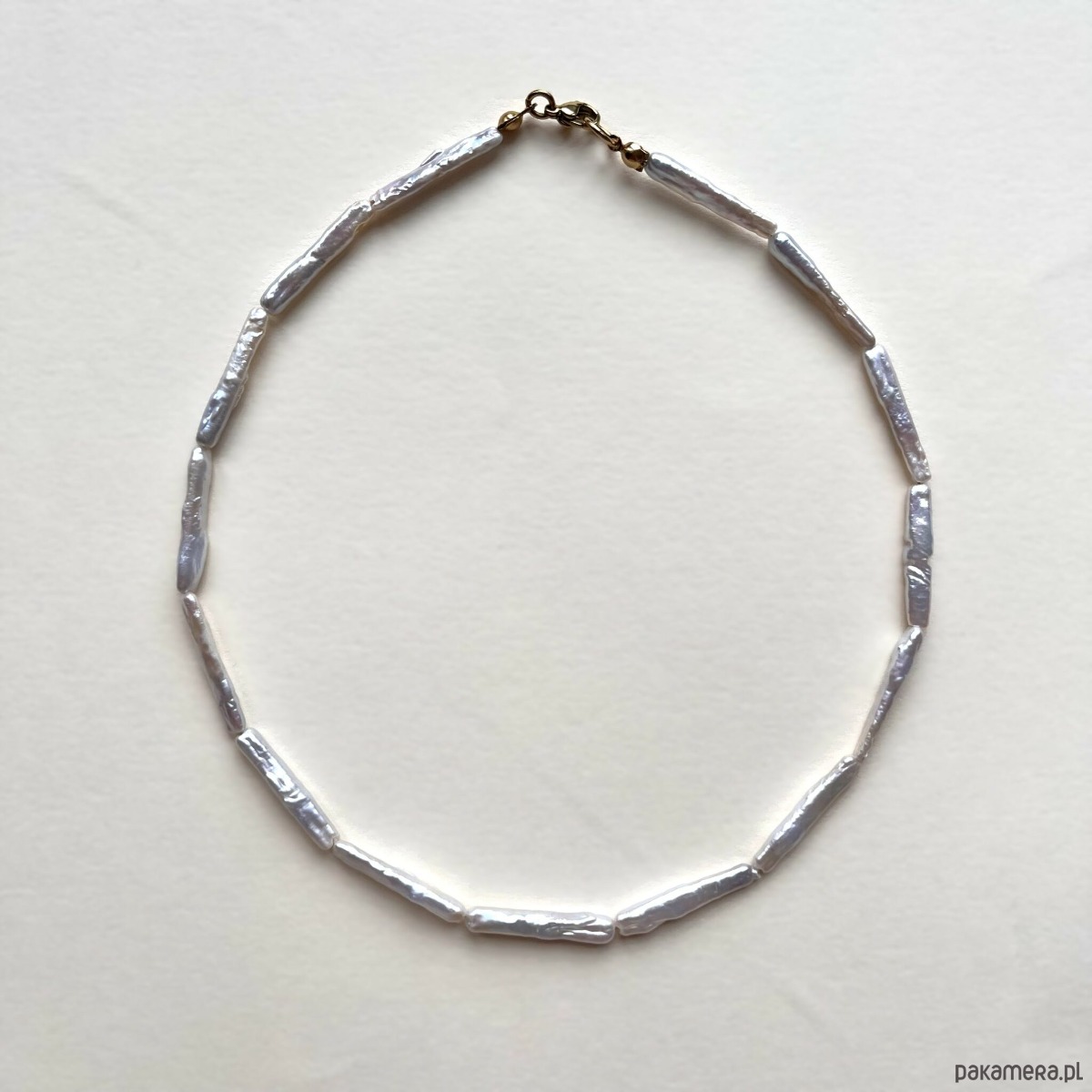 Minimalistyczny naszyjnik z wydłużonych pereł o eleganckiej, smukłej formie. Czysta linia i subtelny połysk sprawiają, że pasuje zarówno do lnianej koszuli, jak i wieczorowej sukienki. Delikatny, ale wyrazisty.