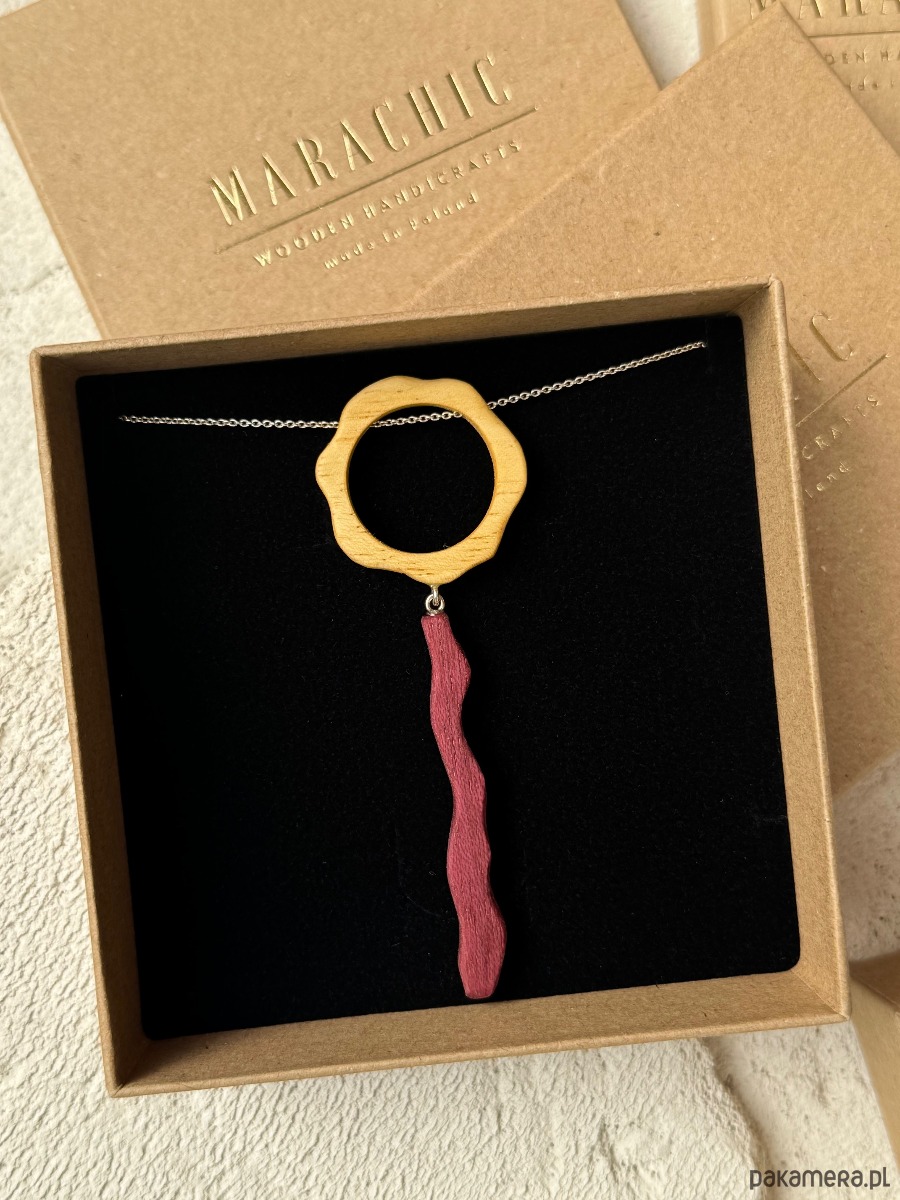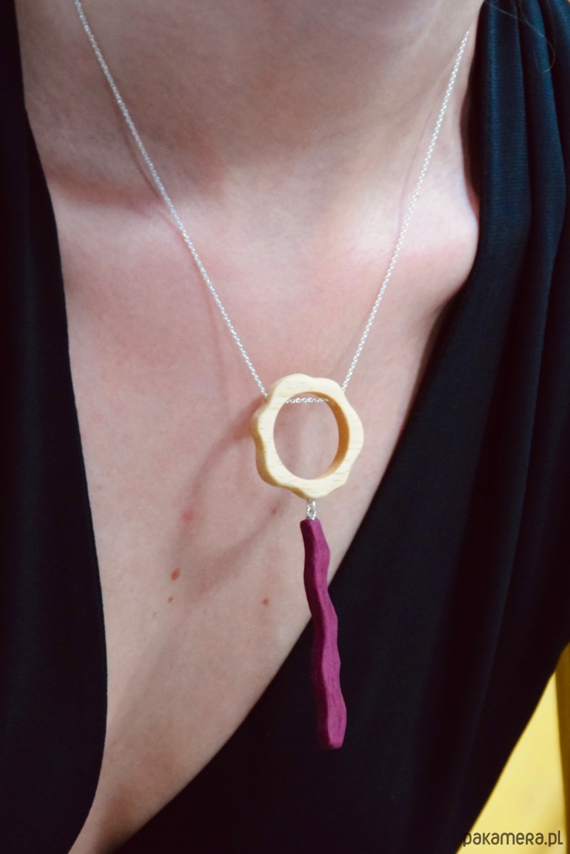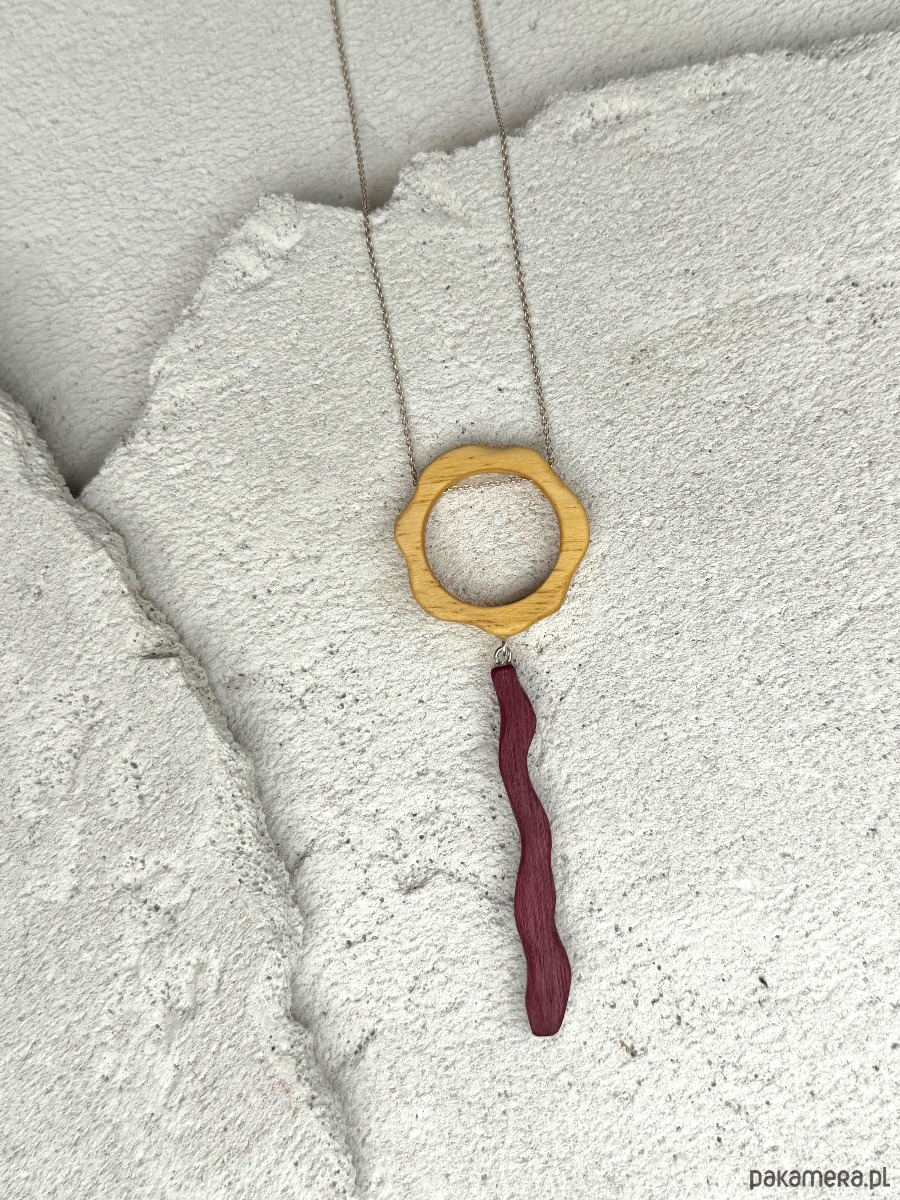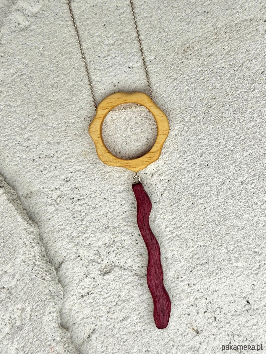 Sercem tej biżuterii artystycznej są ręcznie wykonane elementy z naturalnego drewna egzotycznego: