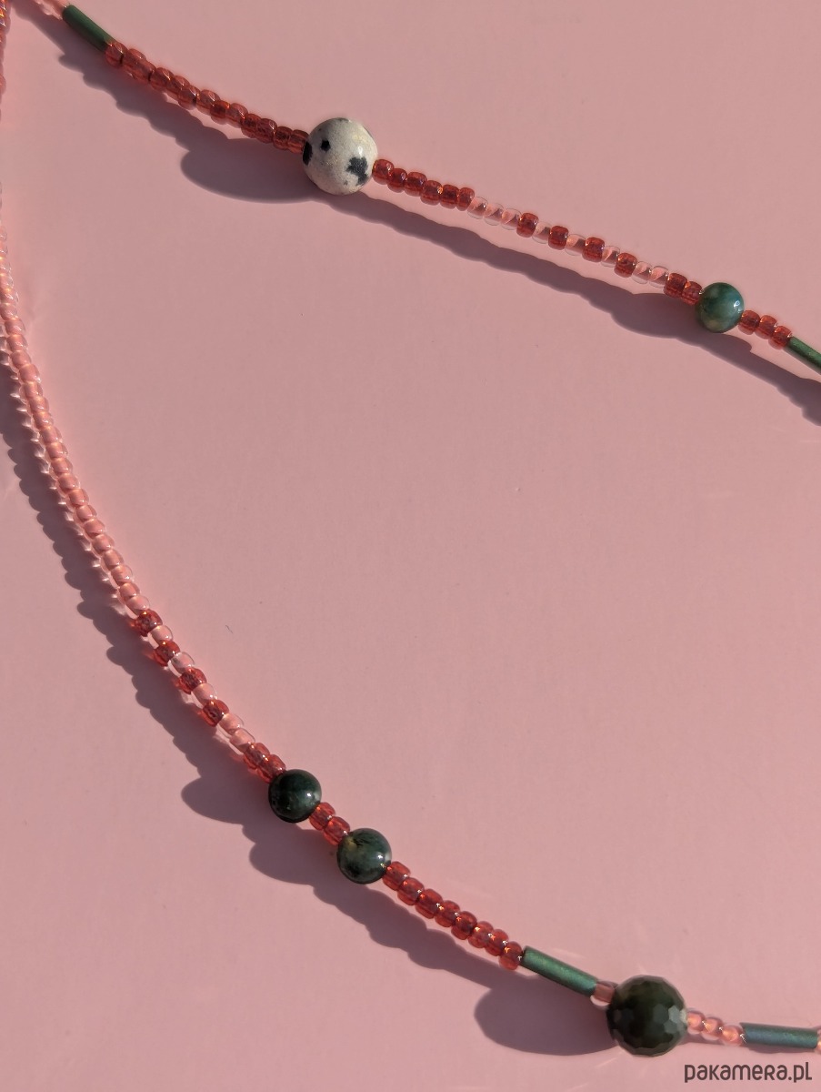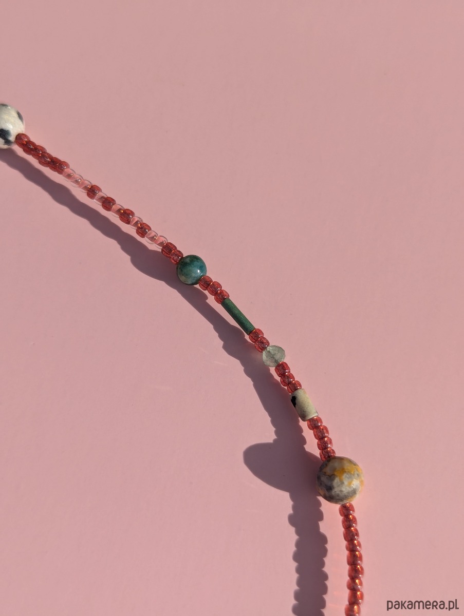 Naszyjnik został wykonany z kamieni naturalnych oraz szklanych koralików, które nawlekam intuicyjnie, kierując się kolorem, energią i wewnętrznym wyczuciem kompozycji. Dzięki temu każda sztuka ma swój własny charakter i historię.