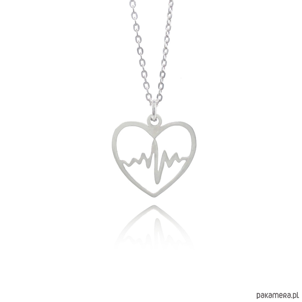 Lekki ażurowy naszyjnik z zawieszką w kształcie serca z pulsem.