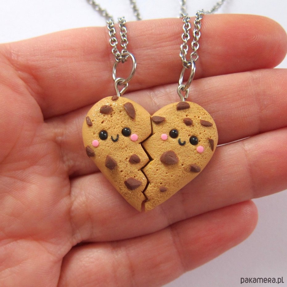 Zabawny zestaw 2 naszyjników wykonanych ręcznie z masy termoutwardzalnej Fimo i z wysokiej jakości łańcuszków ze stali. Wielkość zawieszek to ok. 3 cm x 1,7 cm cm. Długość łańcuszków to 50 cm + łańcuszek regulacyjny 5 cm (jeżeli chcesz krótszy lub dłuższy łańcuszek, to napisz o tym w uwagach do zamówienia). Naszyjniki świetnie nadają się na prezent.