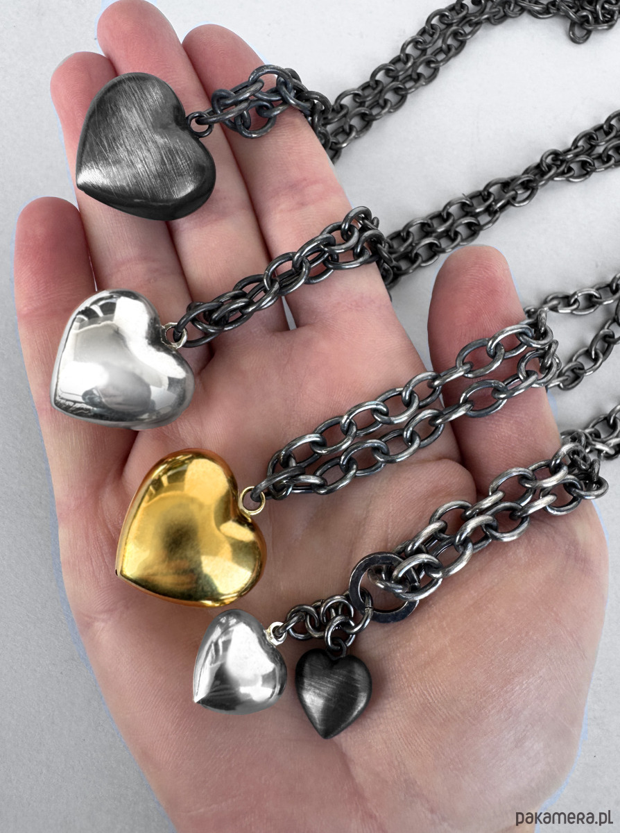 Naszyjnik wykonany z polerowanego i oksydowanego srebra próby 925. Naszyjnik składa się z wisiorka z dwoma serduszkami oraz oksydowanego łańcucha LAN 021 o długości 50 cm, dostępnego w naszym sklepie. Świetnie komponuje się z większością kreacji zarówno eleganckich jak i casual. Idealny wybór, jeśli chcesz podkreślić swój charakter i drapieżną osobowość;)