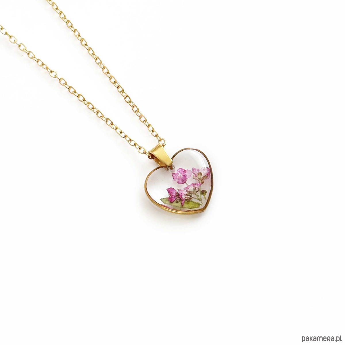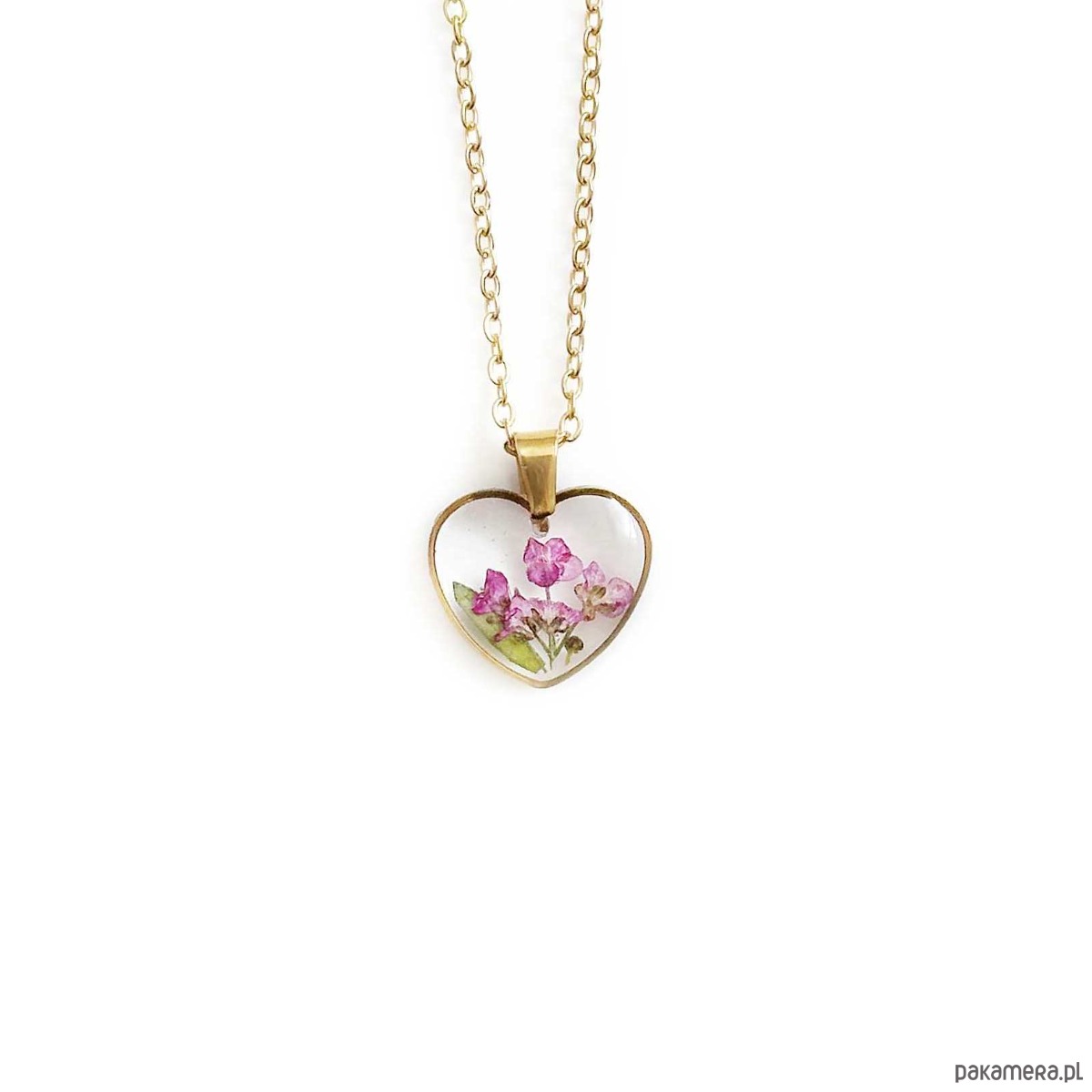 Naszyjnik serce z kwiatami w żywicy