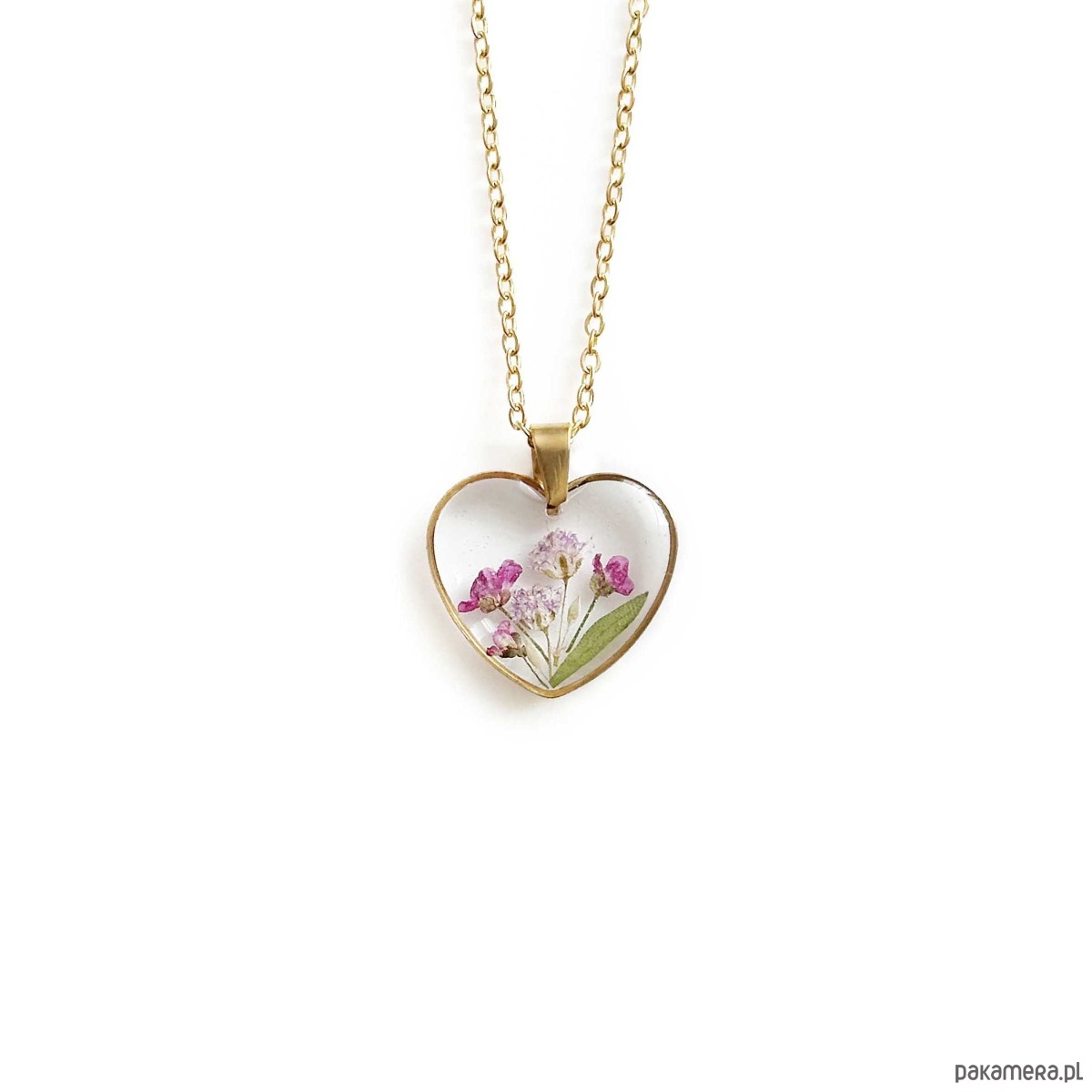 Naszyjnik serce z kwiatami w żywicy