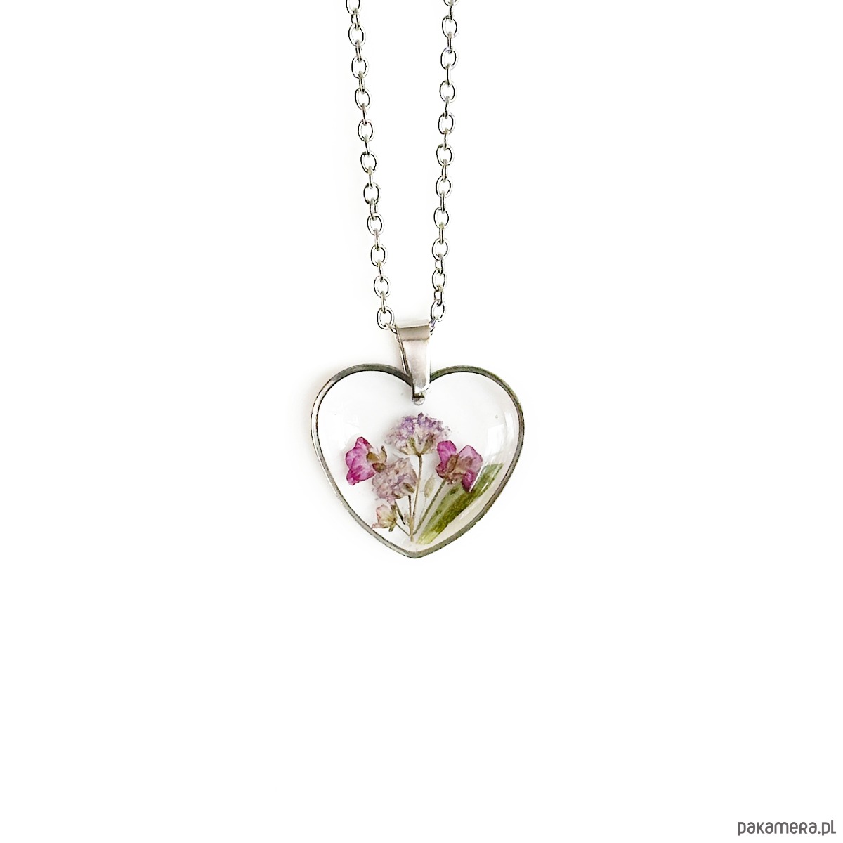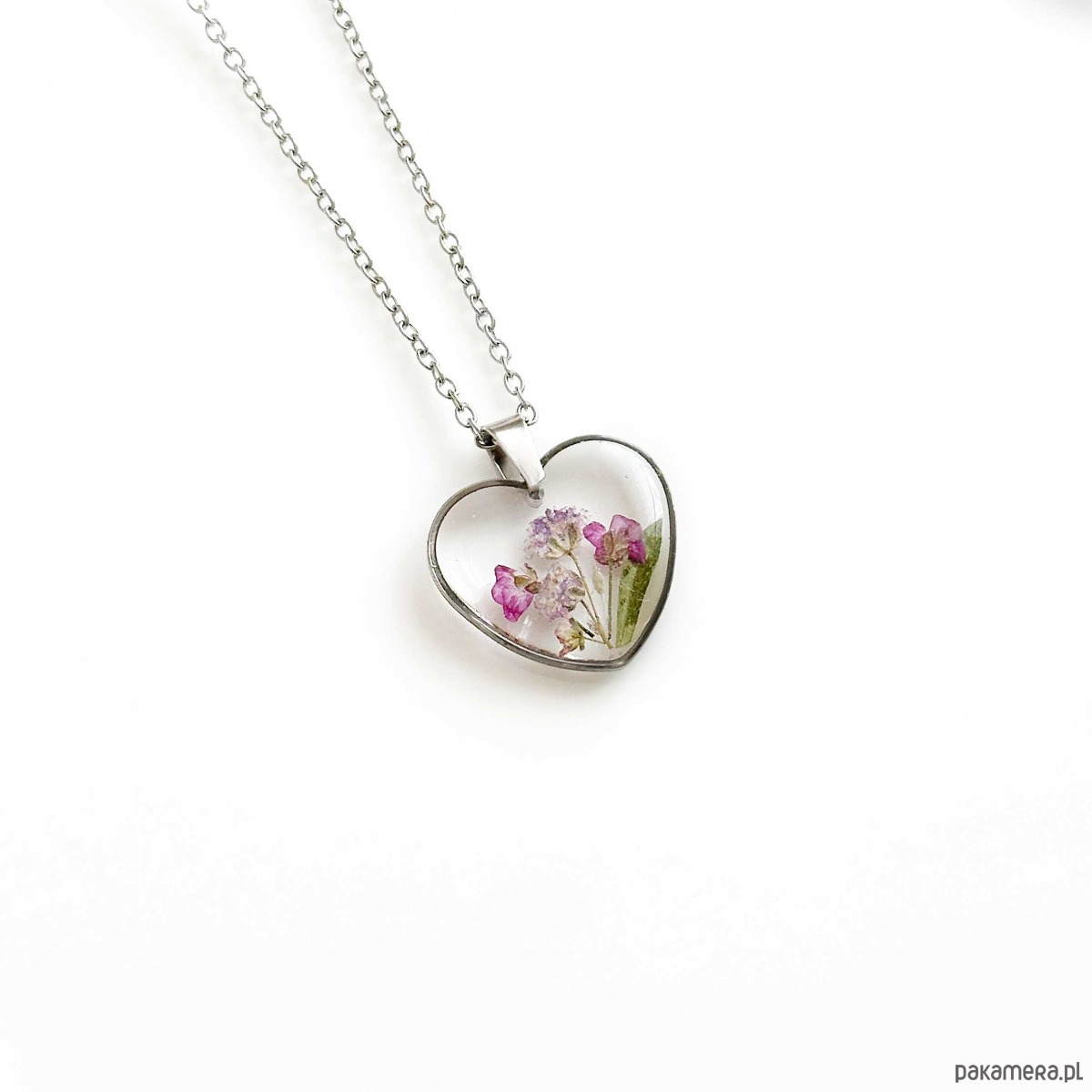 Naszyjnik serce z kwiatami w żywicy