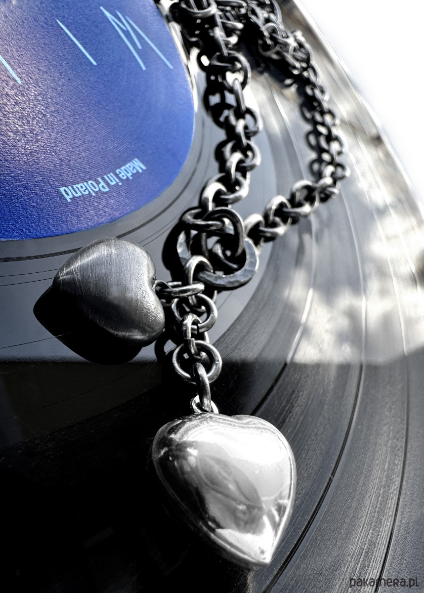 Naszyjnik wykonany z polerowanego i oksydowanego srebra próby 925. Naszyjnik składa się z wisiorka z dwoma serduszkami oraz oksydowanego łańcucha LAN 021 o długości 50 cm, dostępnego w naszym sklepie. Świetnie komponuje się z większością kreacji zarówno eleganckich jak i casual. Idealny wybór, jeśli chcesz podkreślić swój charakter i drapieżną osobowość;)