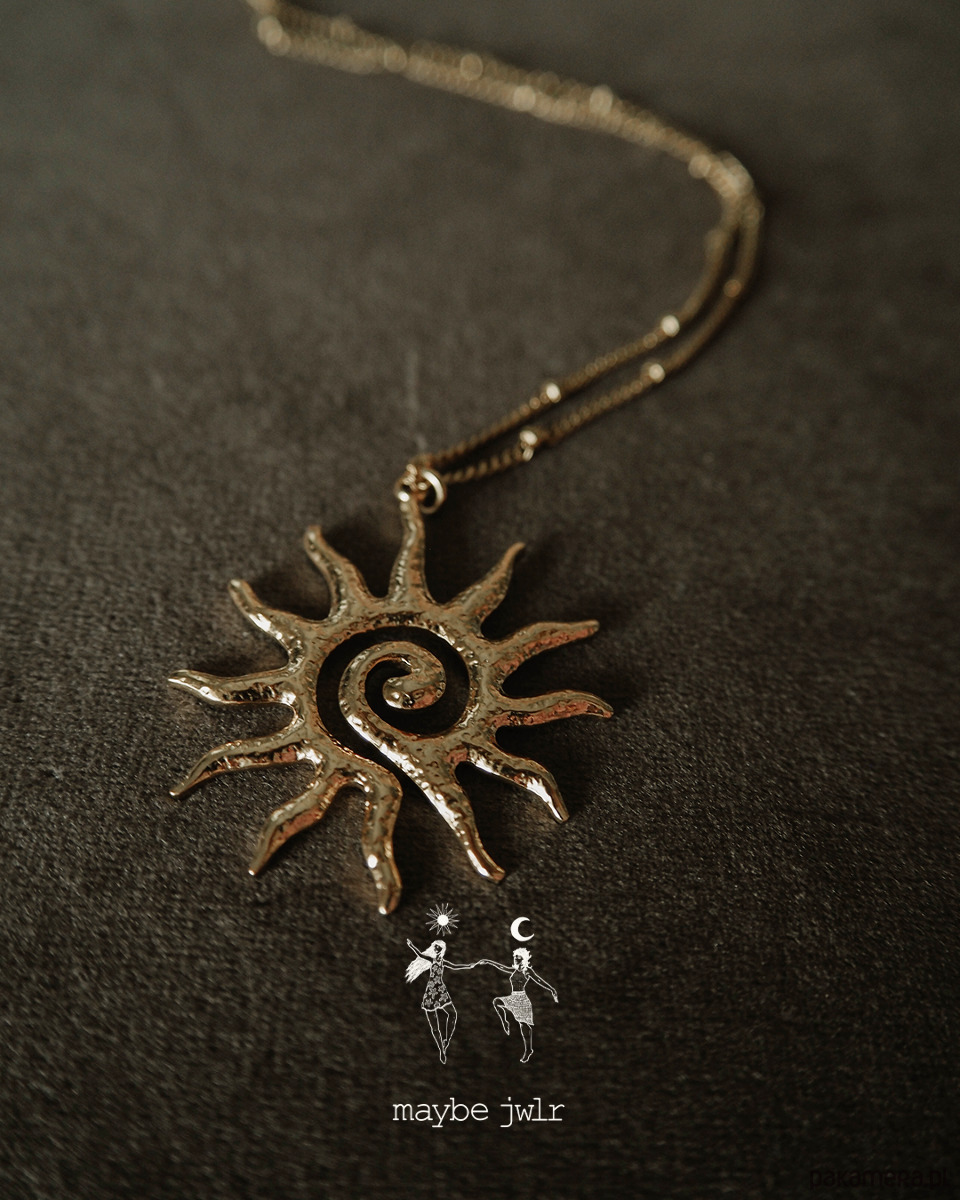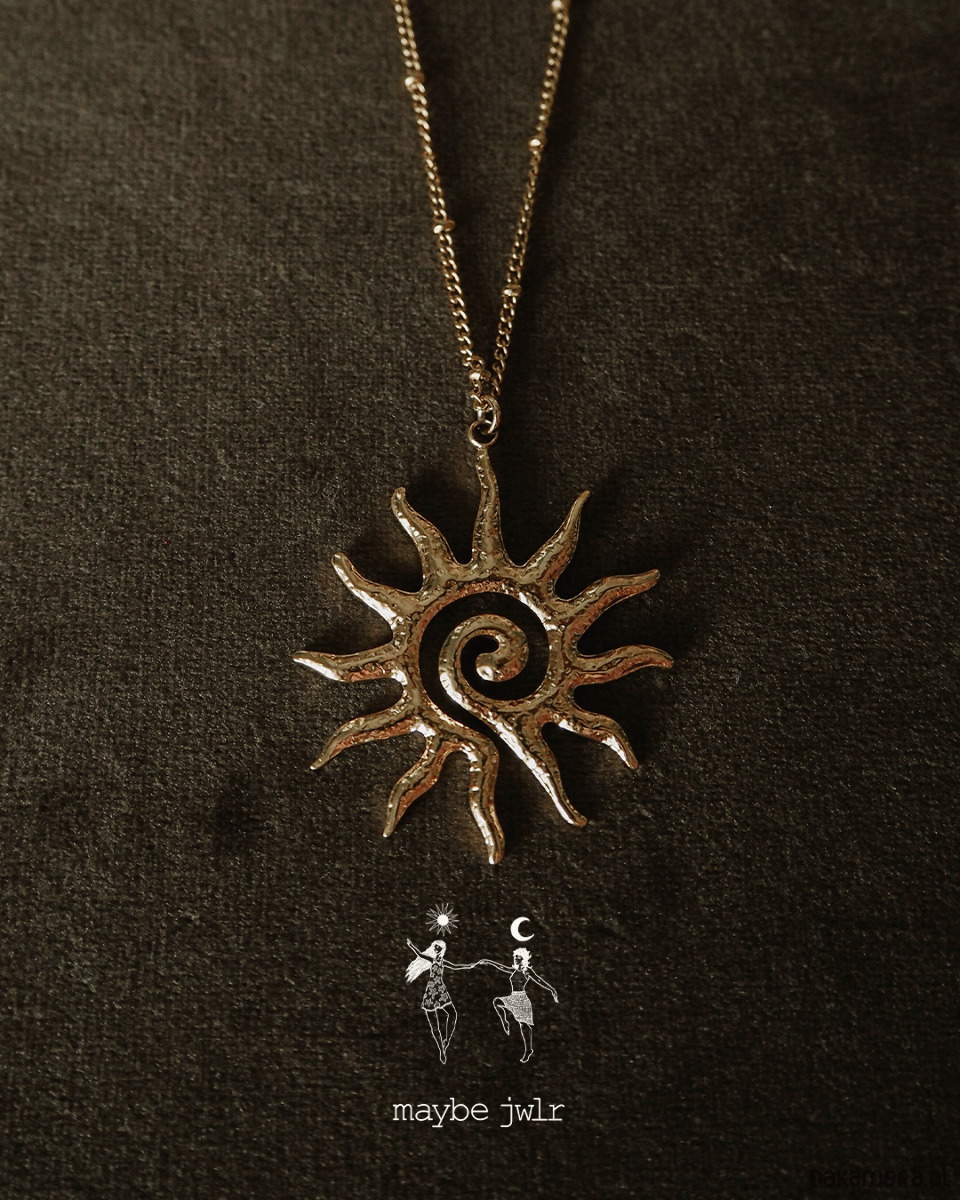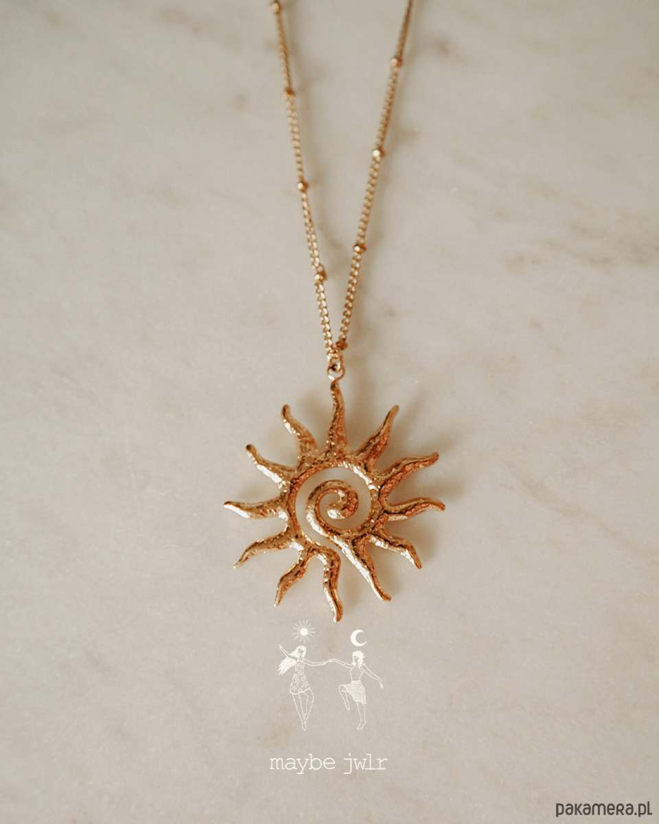 Jeśli lubisz biżuterię, która ma charakter, ale jednocześnie pasuje do wszystkiego – ten naszyjnik jest totalnym pewniakiem. Klasyczny łańcuszek w złotym wydaniu to już ikona stylu, a zawieszka w kształcie słońca dodaje całości wyjątkowego, lekko magicznego vibe’u.