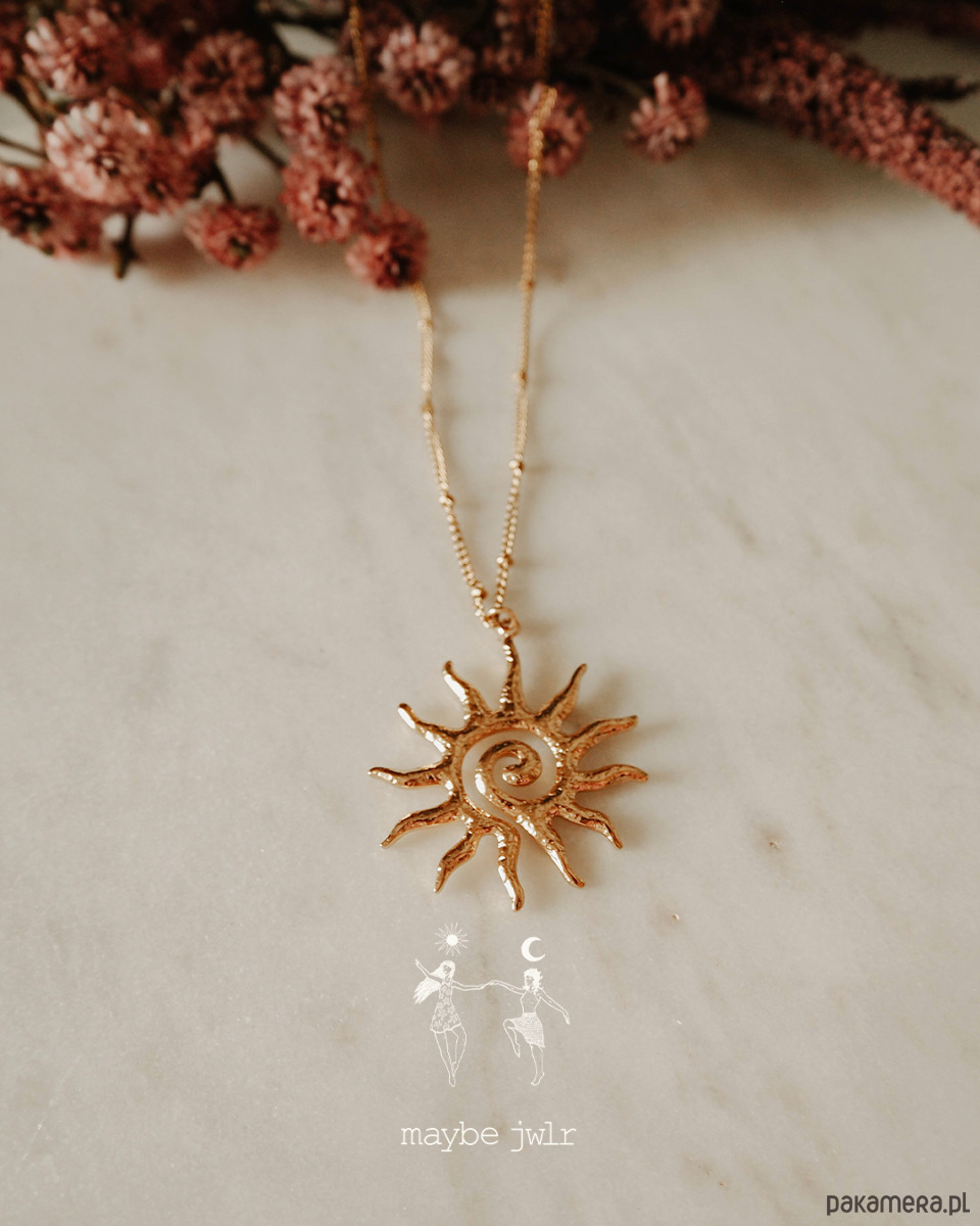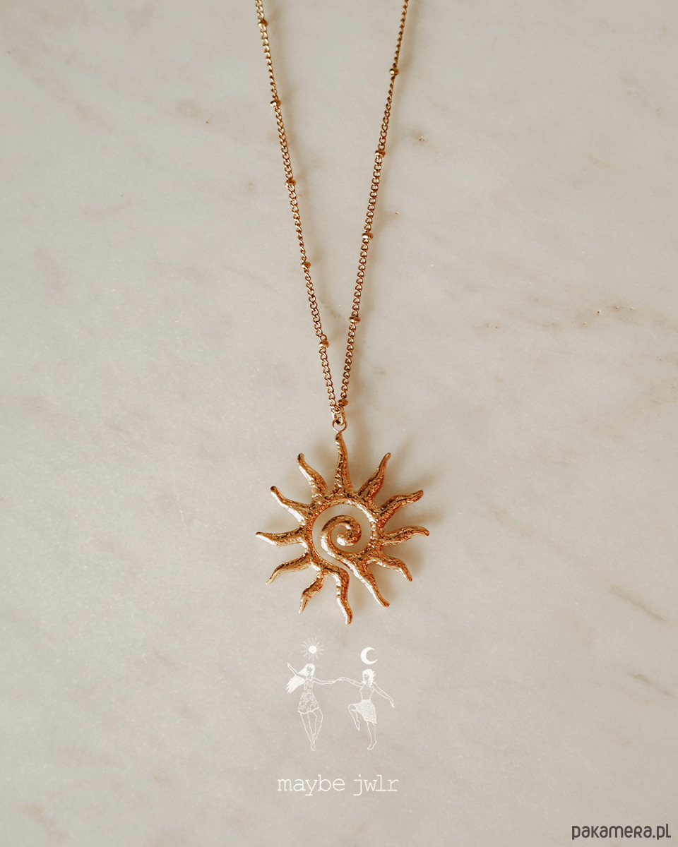 Ten naszyjnik to mała dawka energii, którą możesz nosić cały rok. Delikatny łańcuszek z drobnymi kuleczkami pięknie połyskuje przy każdym ruchu, a zawieszka w kształcie słońca sprawia, że całość wygląda zaskakująco, świeżo i bardzo kobieco.