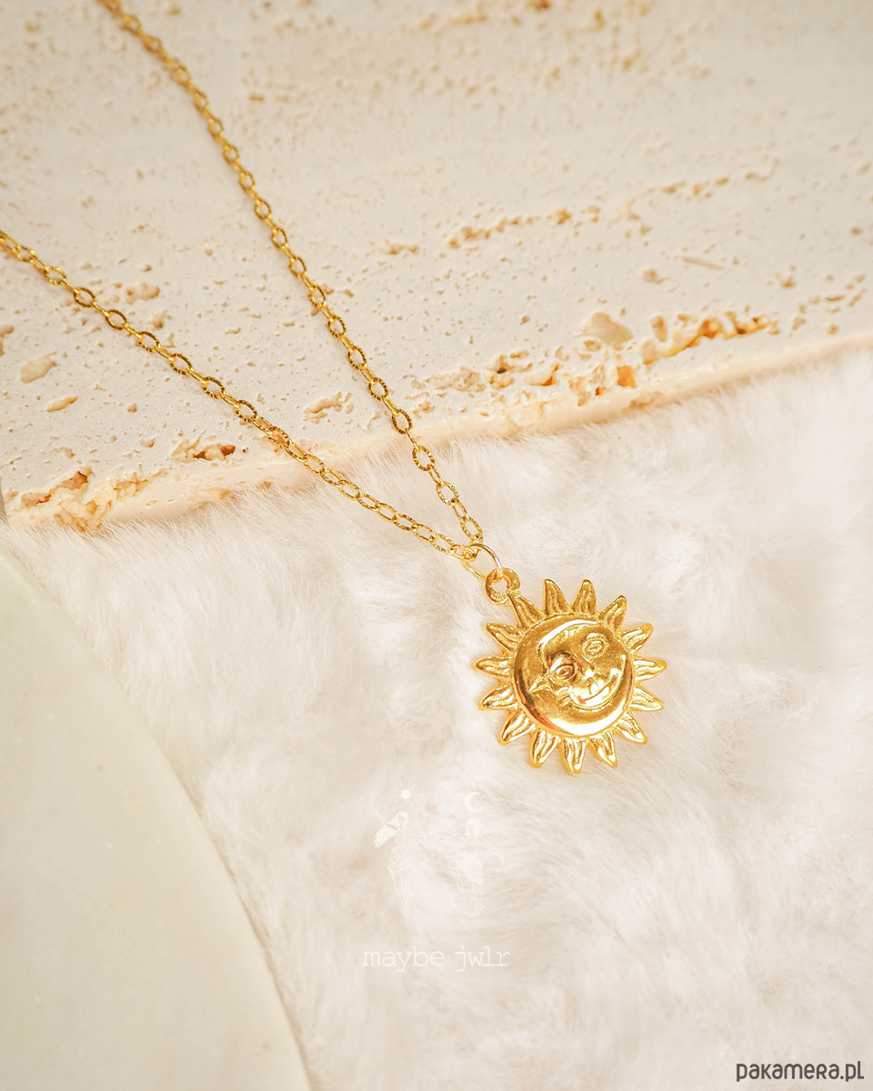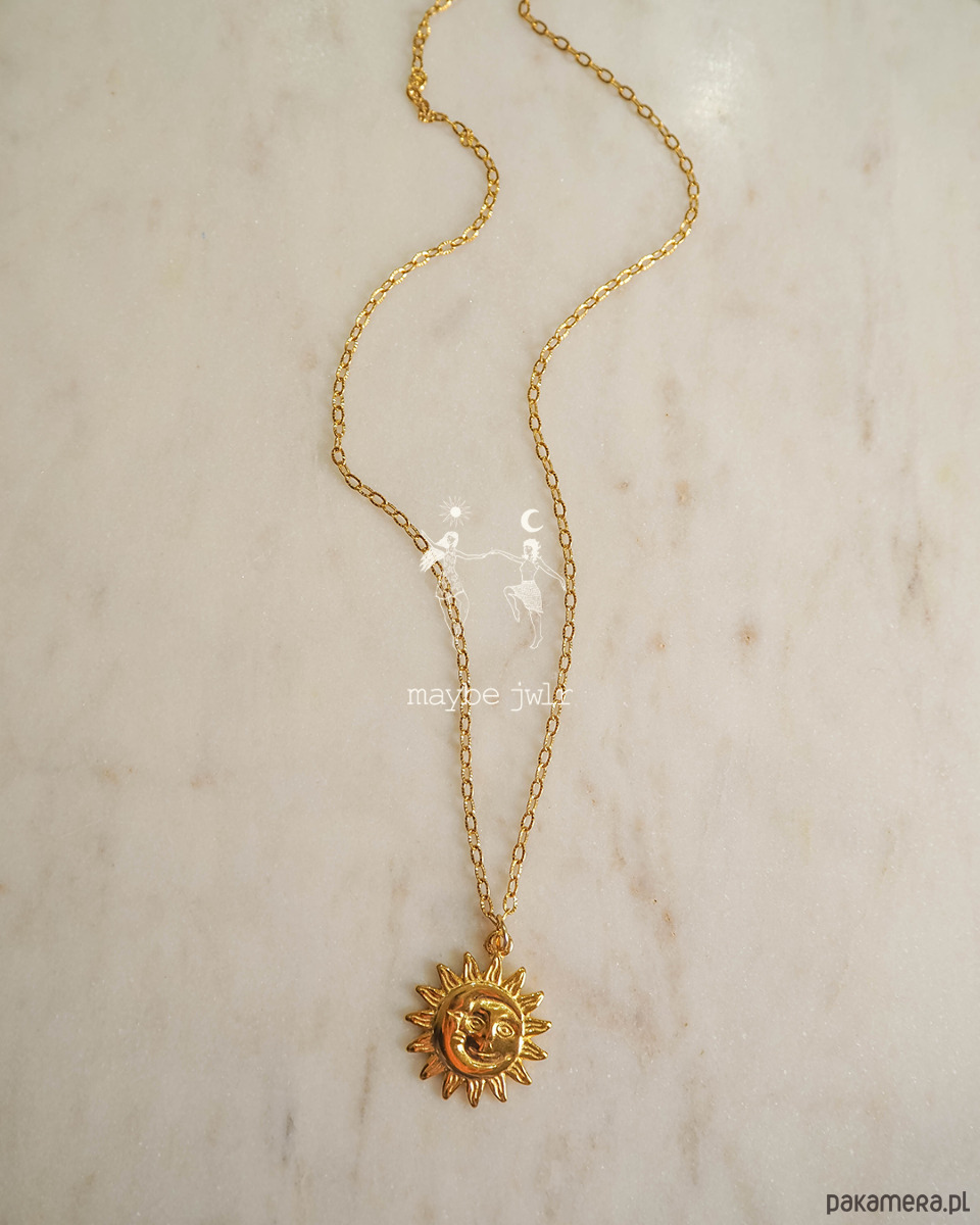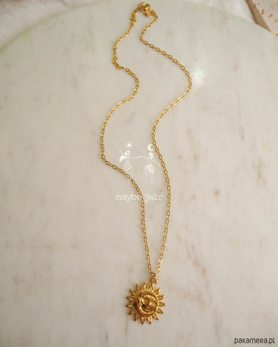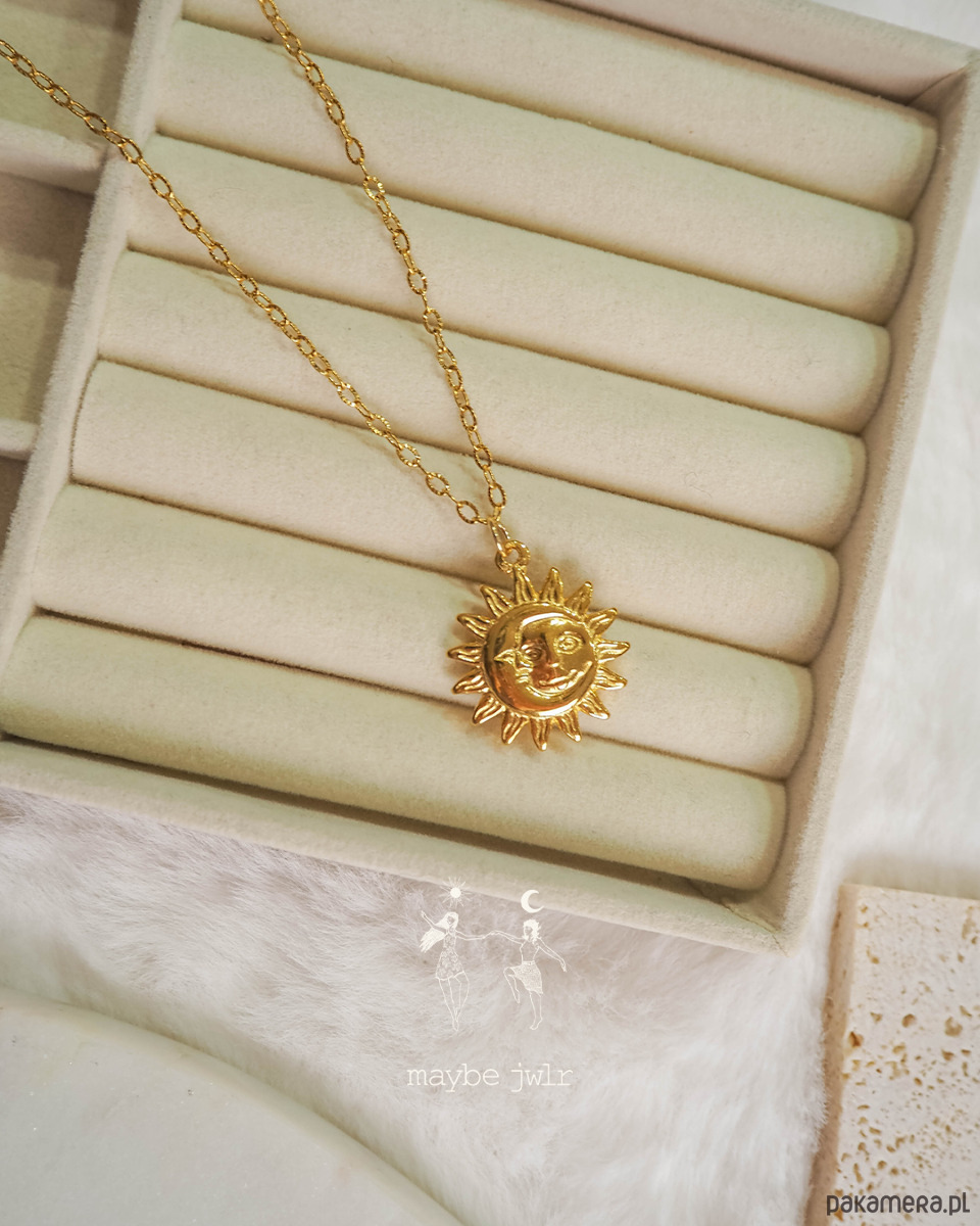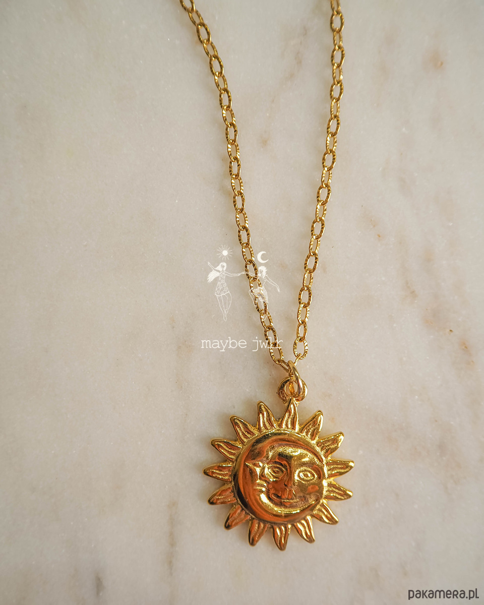 Jeśli lubisz biżuterię, która ma charakter, ale jednocześnie pasuje do wszystkiego – ten naszyjnik jest totalnym pewniakiem. Klasyczny ozdobny łańcuszek w złotym wydaniu to już ikona stylu, a zawieszka w kształcie słońca dodaje całości wyjątkowego, lekko magicznego vibe’u.