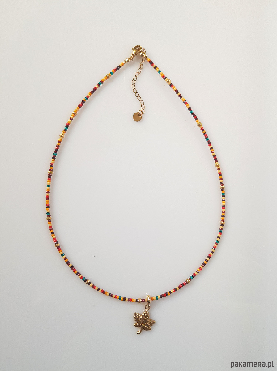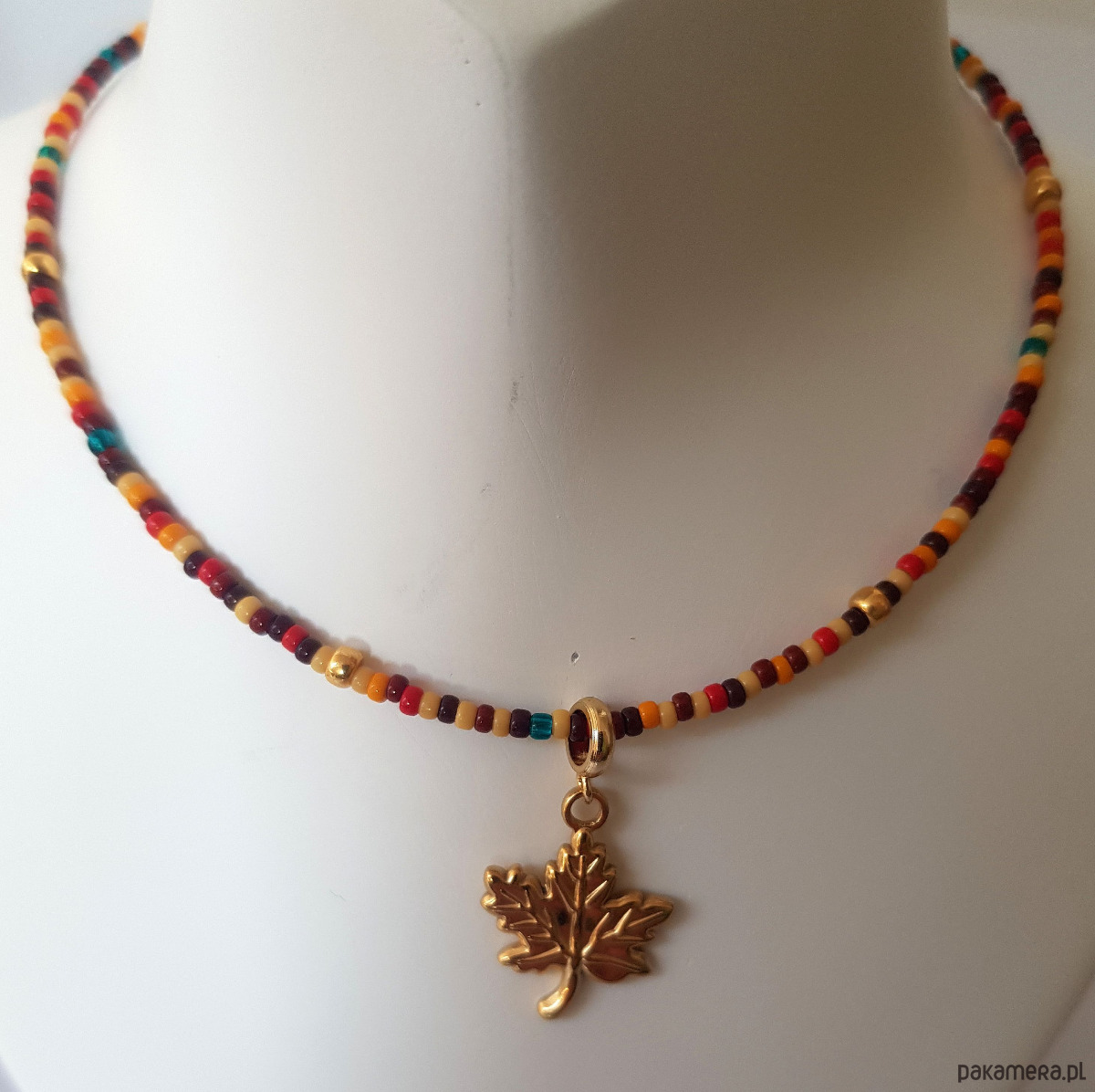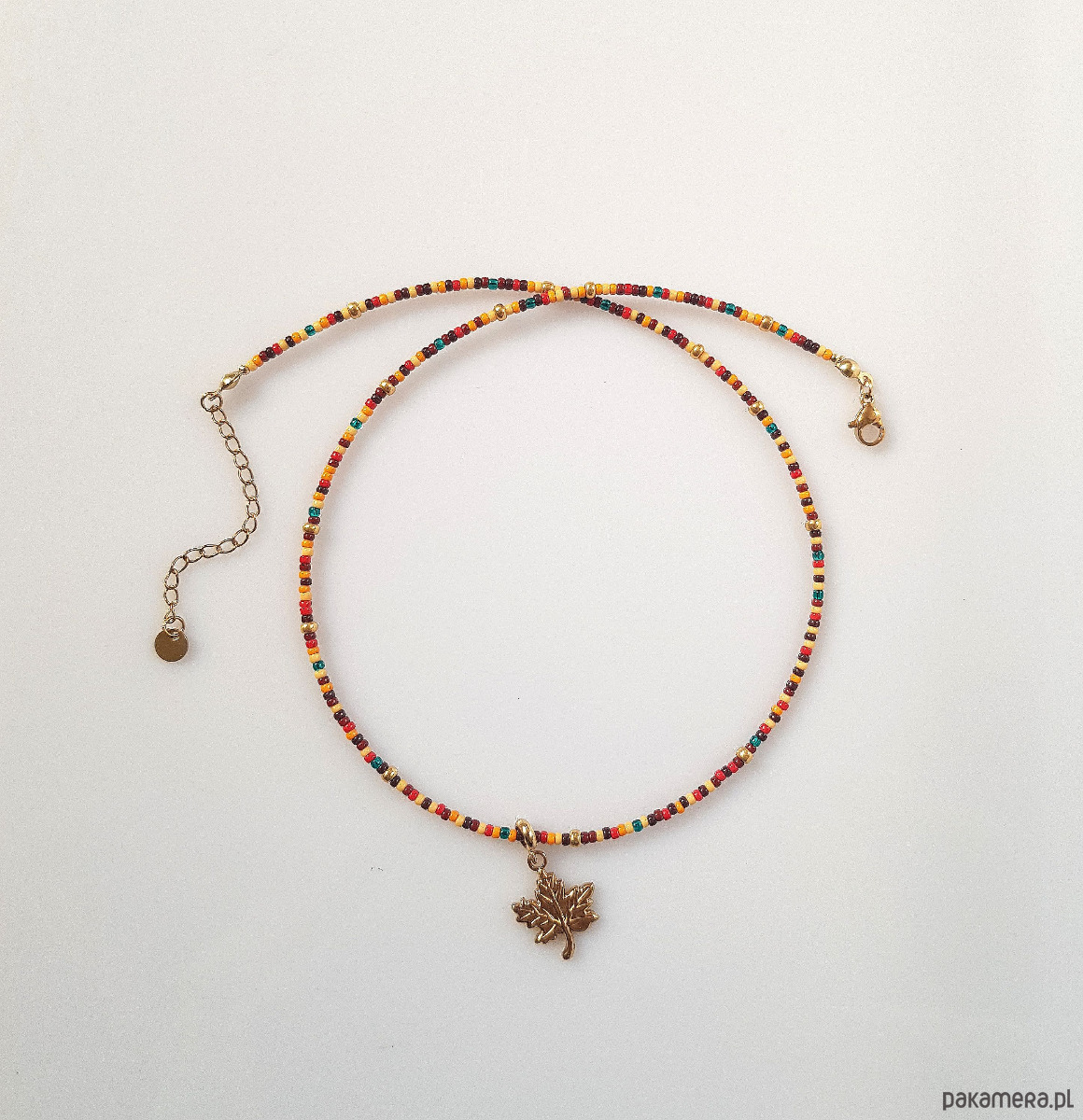 Wesoły, kolorowy, leciutki choker z liściem klonu.