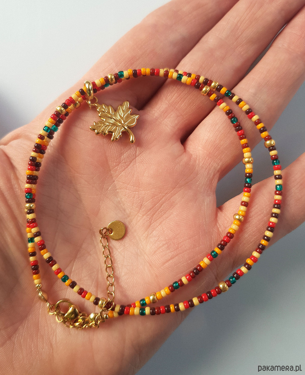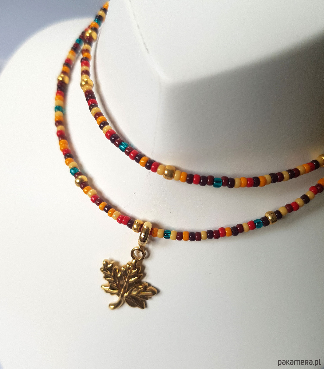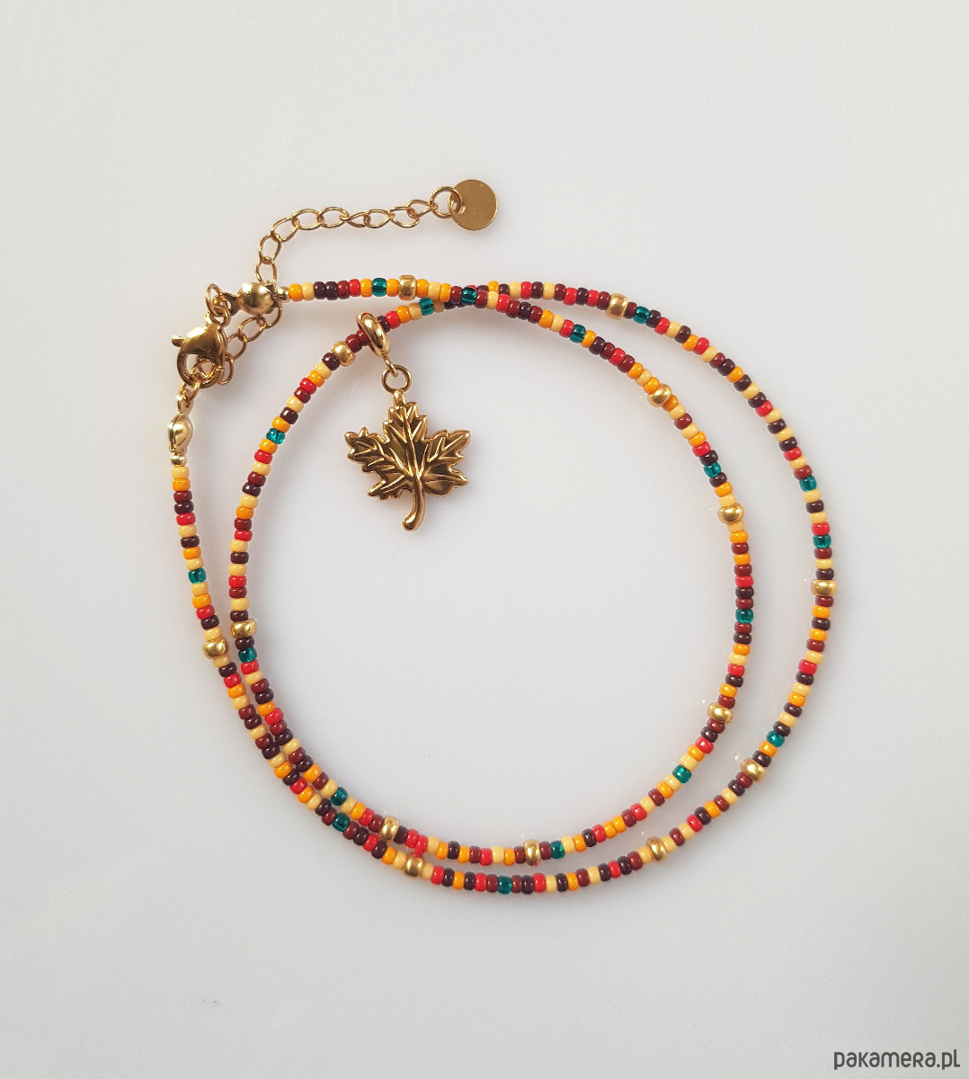 Wesoły, kolorowy, leciutki choker z liściem klonu.
