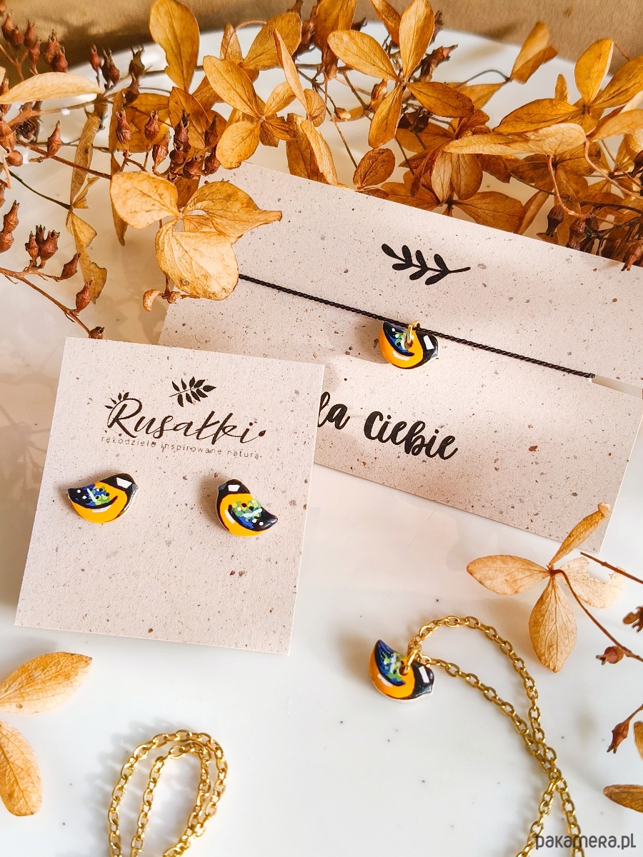 Naszyjnik sikorka bogatka ptaszek, boho amulet szczęścia, prezent dla niej
