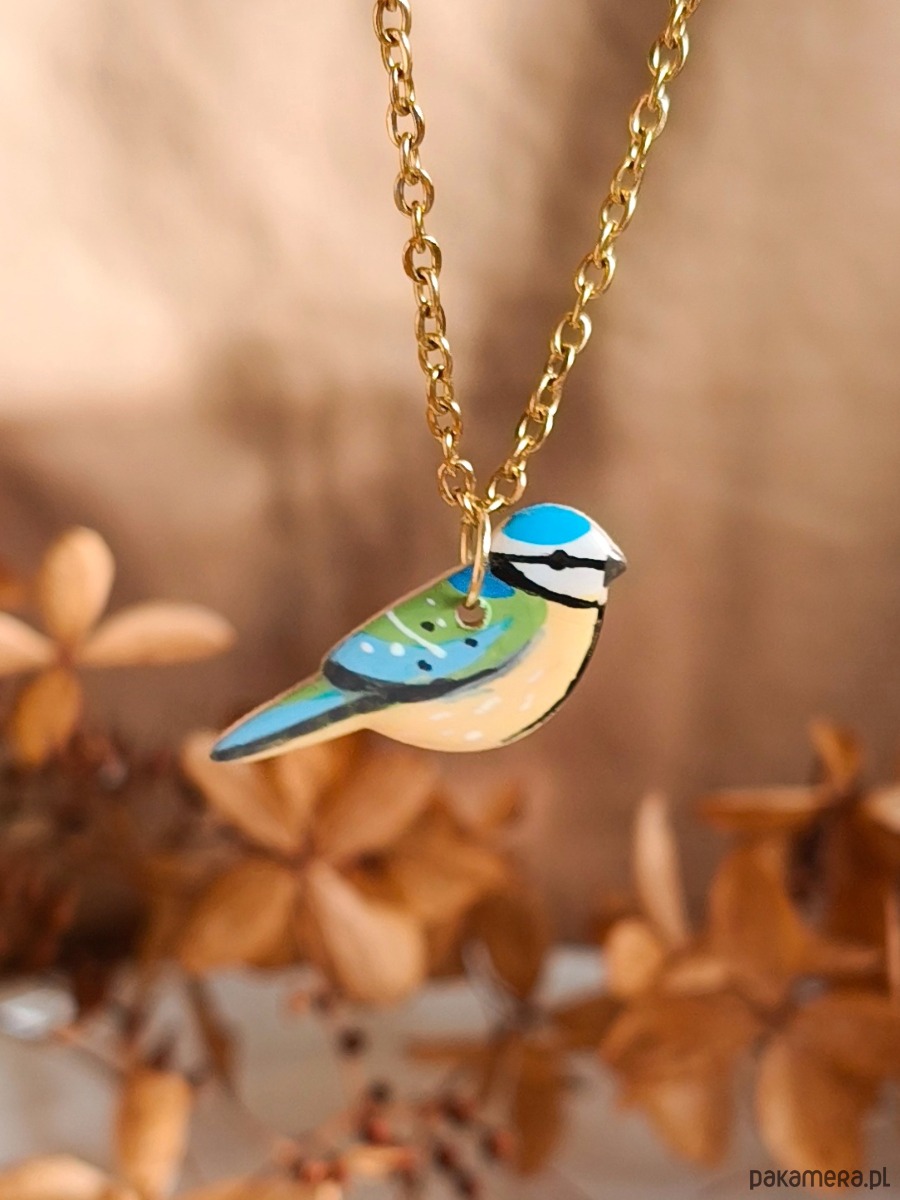 Naszyjnik z sikorką modrą, zwaną także modraszką, to ręcznie wykonana biżuteria w stylu boho, inspirowana wiosną, naturą i delikatnymi kolorami ptaków. Modraszka symbolizuje radość, lekkość, optymizm i nowe początki, dlatego naszyjnik może być traktowany jako subtelny amulet dobrej energii. To piękny, pastelowy prezent dla kobiet kochających ptaszki, przyrodę i biżuterię z duszą — idealny na Dzień Kobiet, Dzień Matki lub jako wiosenny upominek bez okazji.