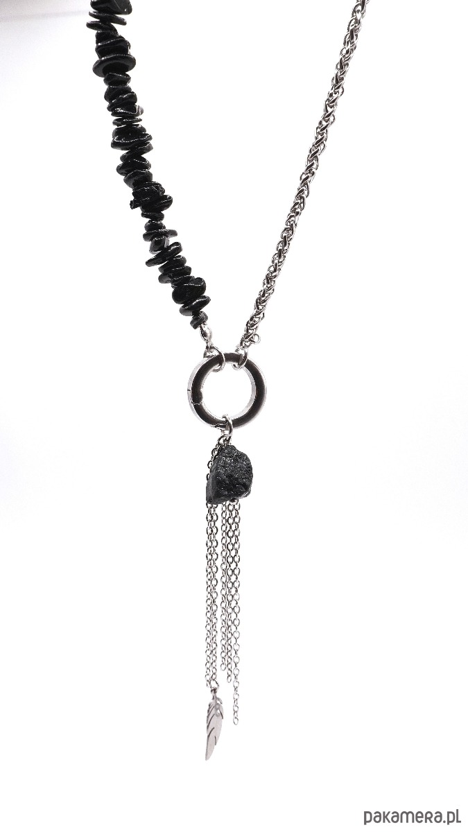 Wyjątkowy naszyjnik, który łamie schematy. Połączenie surowości czarnego turmalinu z chłodnym blaskiem stali szlachetnej tworzy biżuterię z charakterem – idealną dla kobiet pewnych siebie, które szukają dodatków o głębszym znaczeniu.