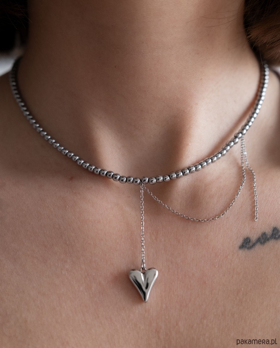 Silver Heart Drop to minimalistyczny naszyjnik o chłodnej, eleganckiej estetyce.