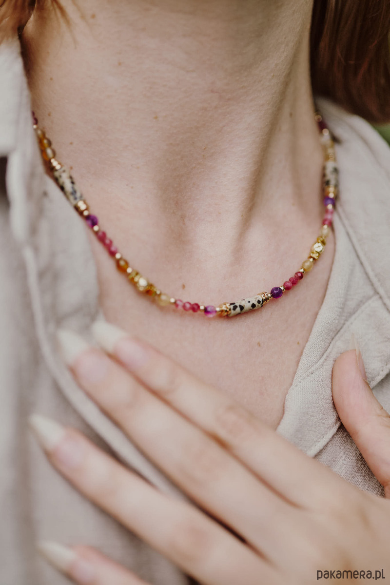 Ten naszyjnik inspirowany jest tropikalnym owocem, stworzony z kamieni i minerałów.