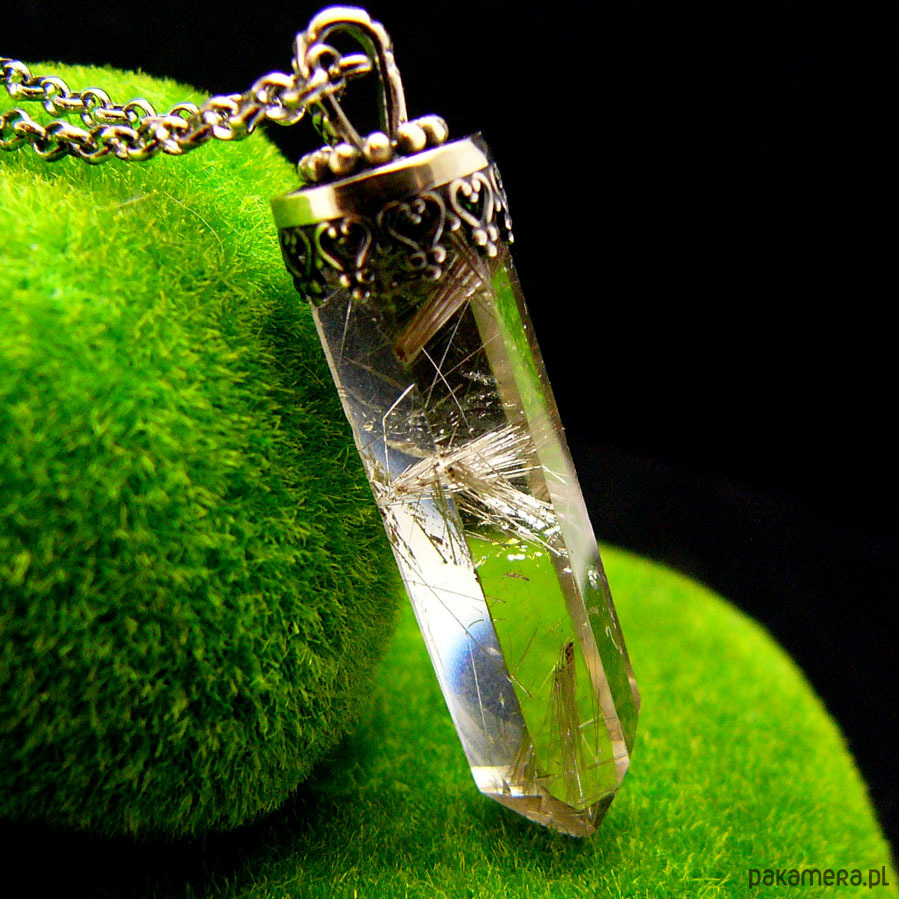 Naszyjnik Sopel Złociste Włosy Wenus - Srebro Kwarc z Rutylem