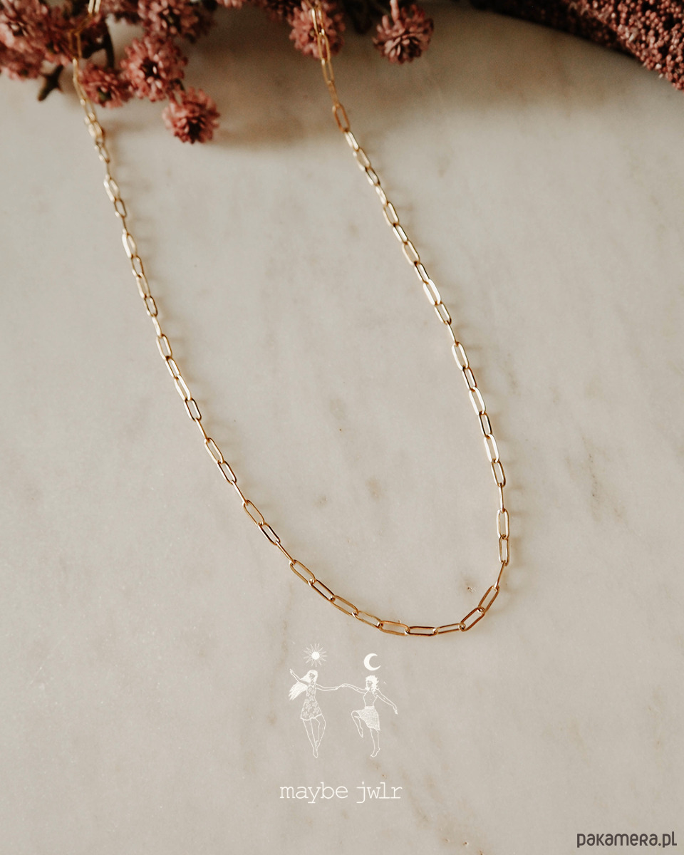 Długość łańcuszka to 45 cm + 5 cm regulacji, więc łatwo dopasujesz go do ulubionych dekoltów albo zestawisz z innymi naszyjnikami w stylu layering.