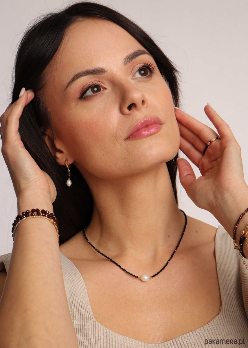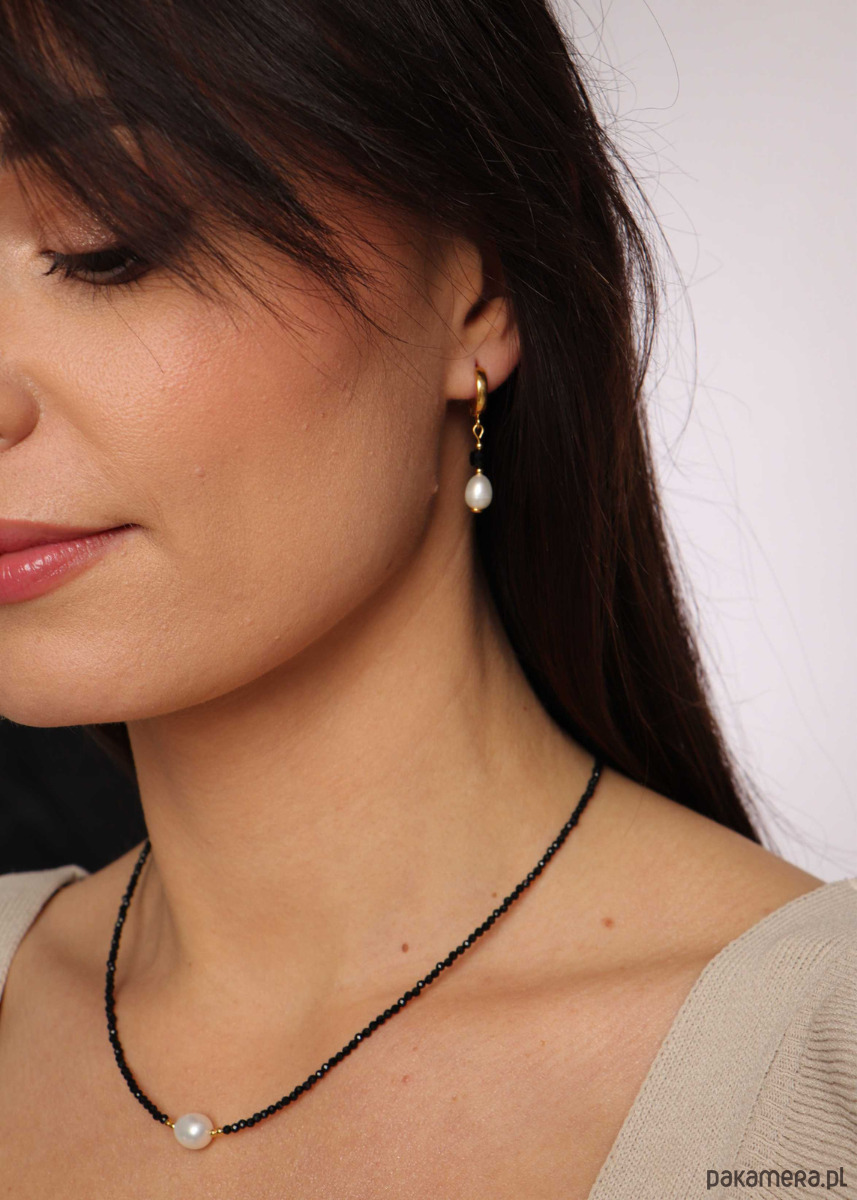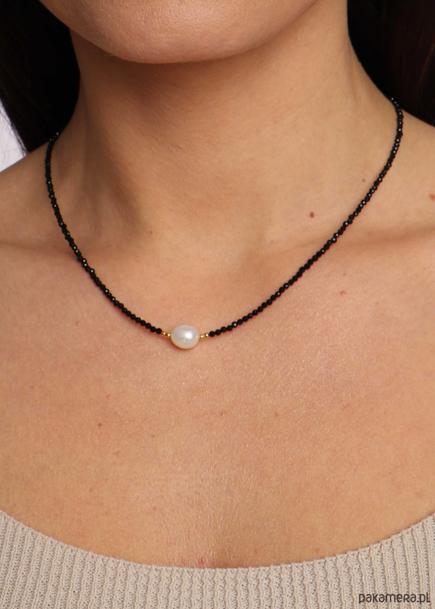 Cechy produktuKamień: Spinel, Perła naturalnaWielkość kamieni: ok. 2 mmKolor: CzarnyWykończenie: Srebro pr. 925, pozłacane 24 k złotemWłaściwość kamieniaSpinel to kamień odnowy i przywrócenia energii. Jest idealny dla osób przemęczonych, którym brakuje sił. Pomaga na nowo wzbudzać nadzieję oraz inspiruje do nabrania nowej pespektywy. Jest wsparciem w zwalczaniu życiowych przeszkód i wyzwań.Idealny na prezentNaszyjnik będzie idealnym pomysłem prezentowym. Biżuteria, wykonywana z kamieni naturalnych wpisuje się w obecne trendy, dzięki czemu możesz mieć pewność, że zachwyci obdarowaną osobę. Nasz naszyjnik ze spinelem, w kolorze głębokiej czerni, jest uniwersalnym, eleganckim elementem ubioru, który obłędnie wyglądać będzie w zestawieniu z każdą stylizacją. Możliwość regulacji długości sprawia, że nie musisz już martwić się o to, że nie trafisz z rozmiarem!OpakowanieNaszyjnik zapakowany będzie w minimalistyczne, granatowe pudełeczko ze złotym logiem. Wewnątrz pudełeczka znajdziesz białą wkładkę z nazwą kamienia oraz jego wyjątkowymi właściwościami.