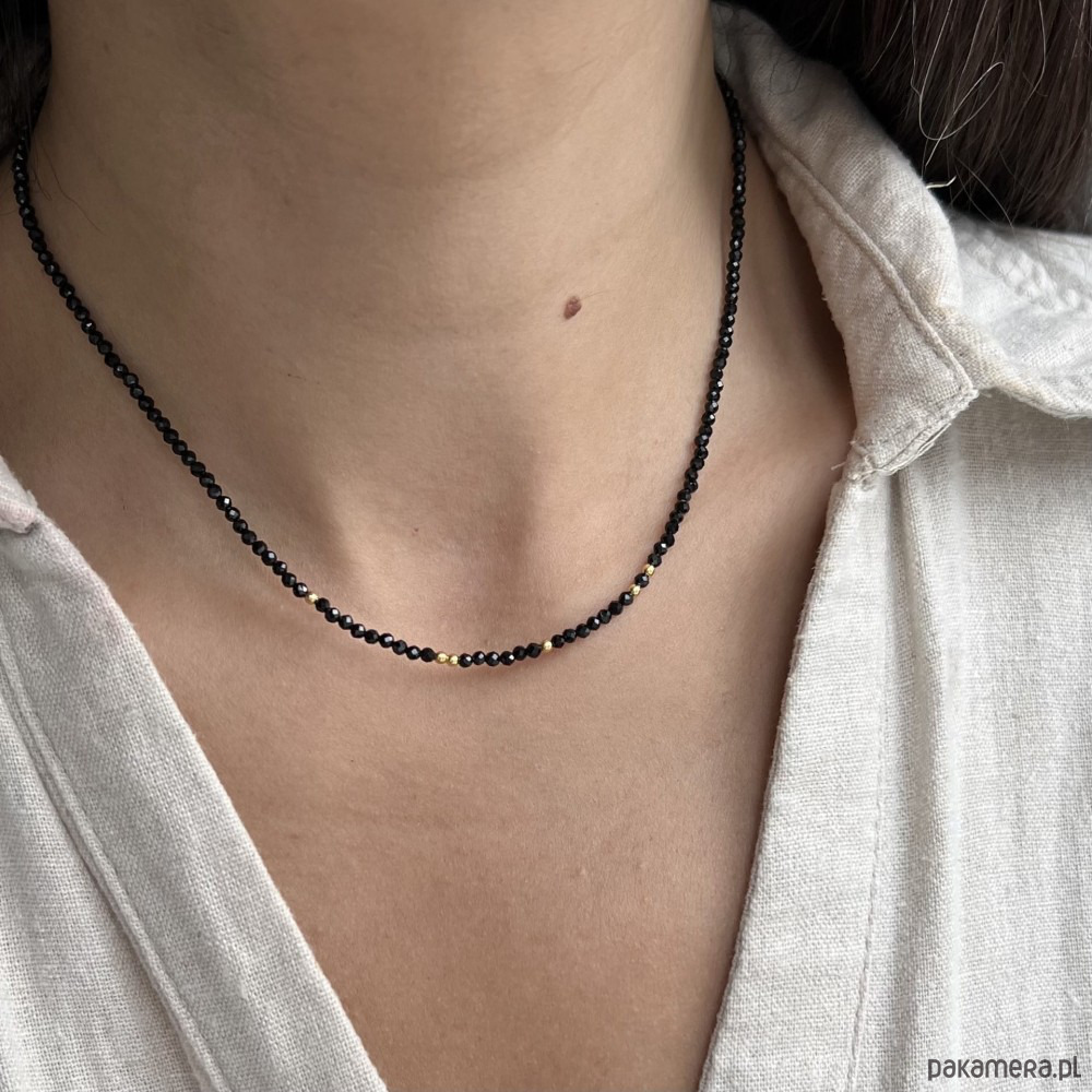 NOC to naszyjnik z naturalnym spinelem, którego intensywnie czarny odcień przypomina rozgwieżdżone niebo. Spinel to kamień kojarzony z odwagą, wewnętrzną siłą i ochroną – nosząc go, dodajesz swojej stylizacji nie tylko klasy, ale i symbolicznego znaczenia.
