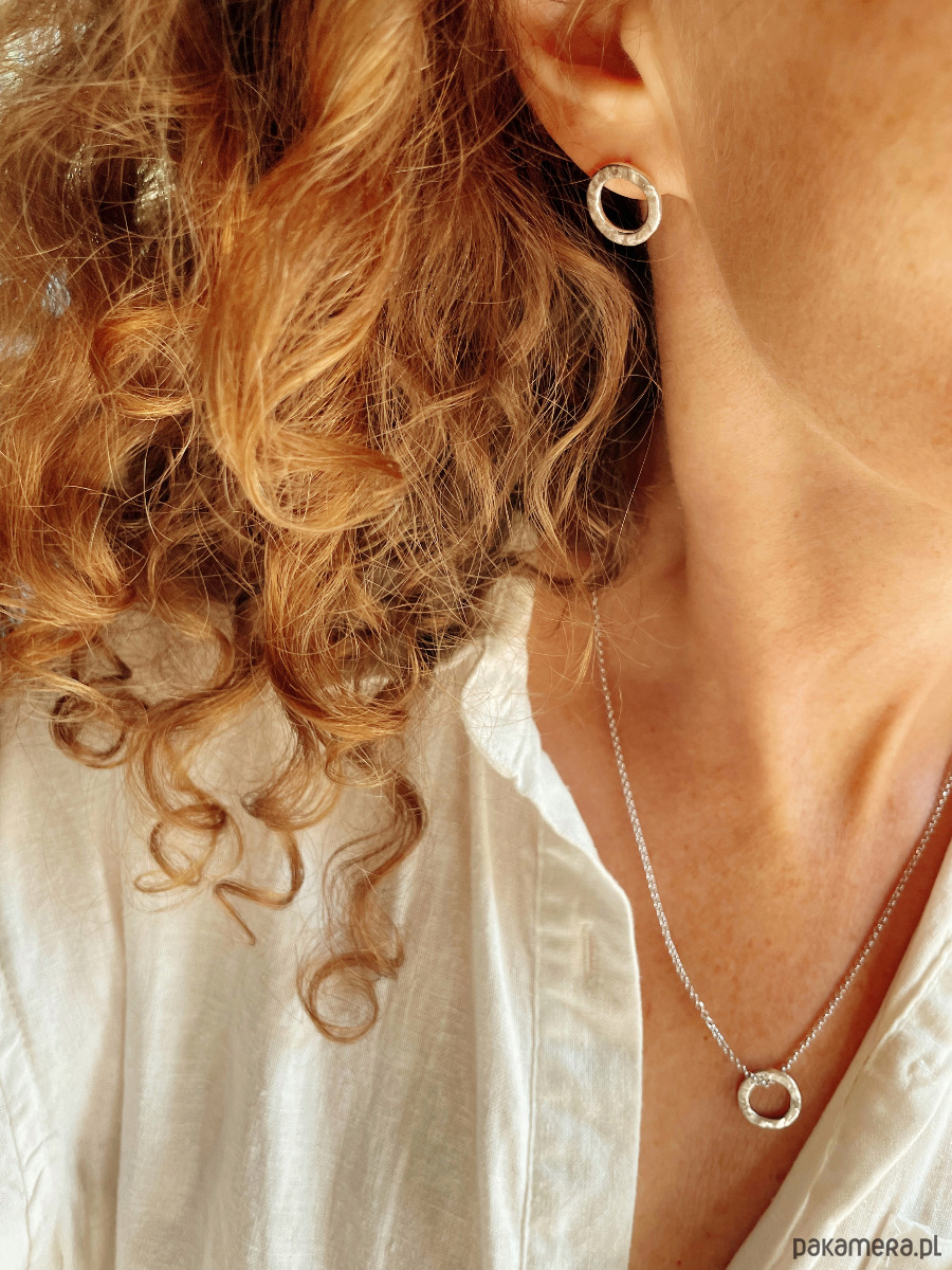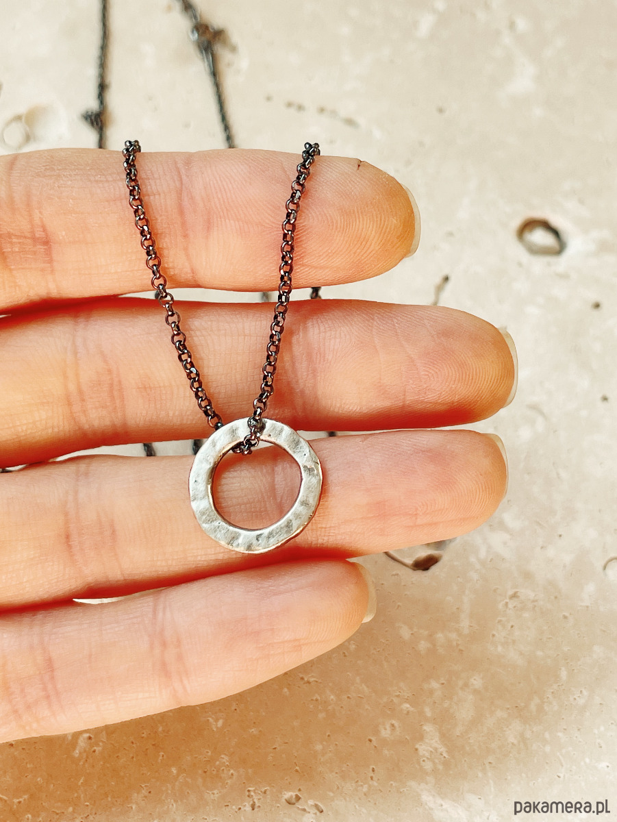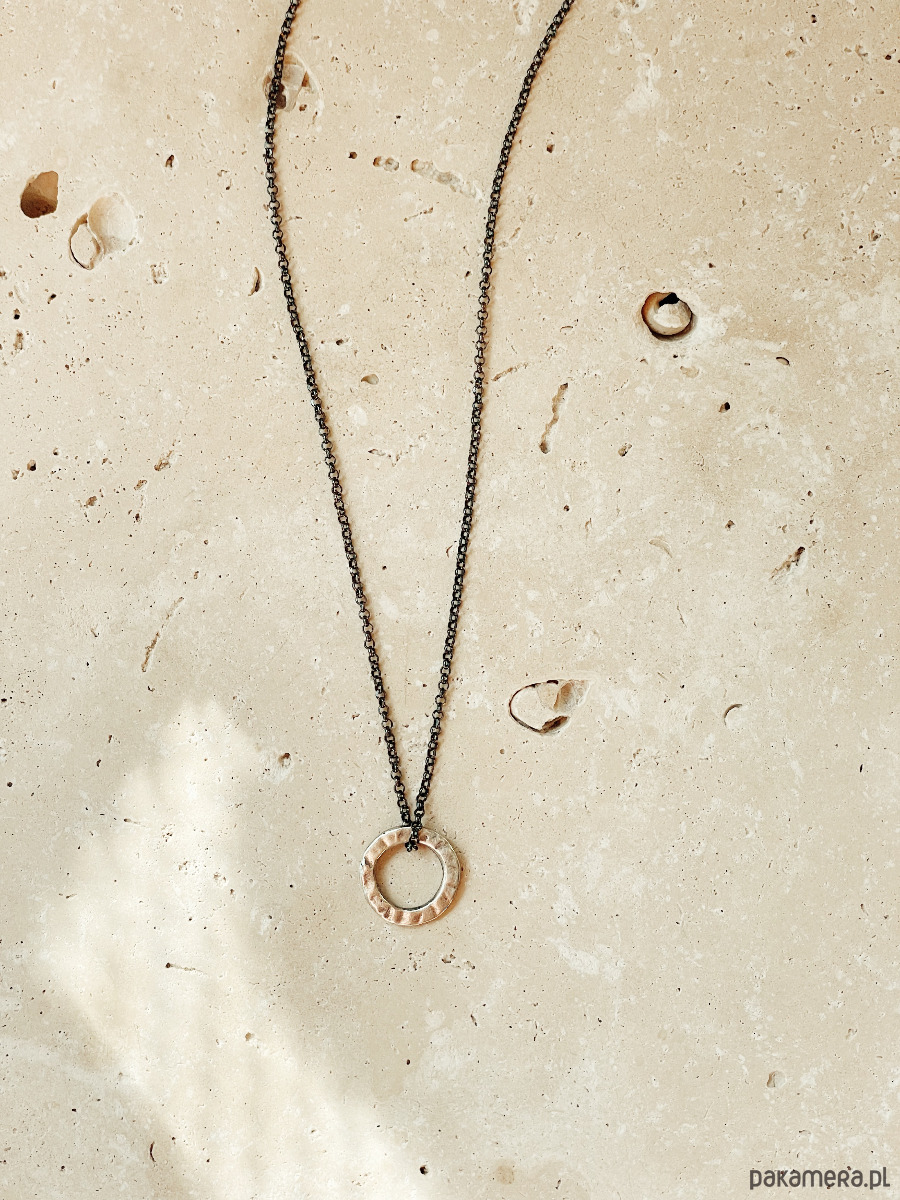 Naszyjnik z zawieszką, organicznym kółkiem ozdobionym surową fakturą