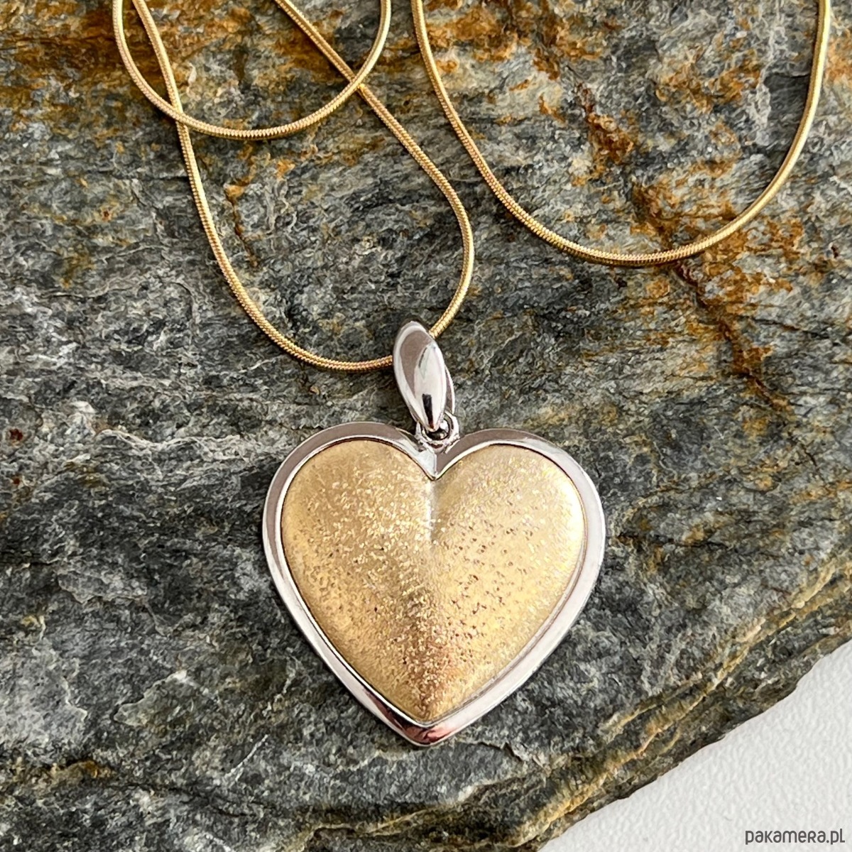 NASZYJNIK SREBRNE POZŁACANE SERCE NA ŁAŃCUSZKU