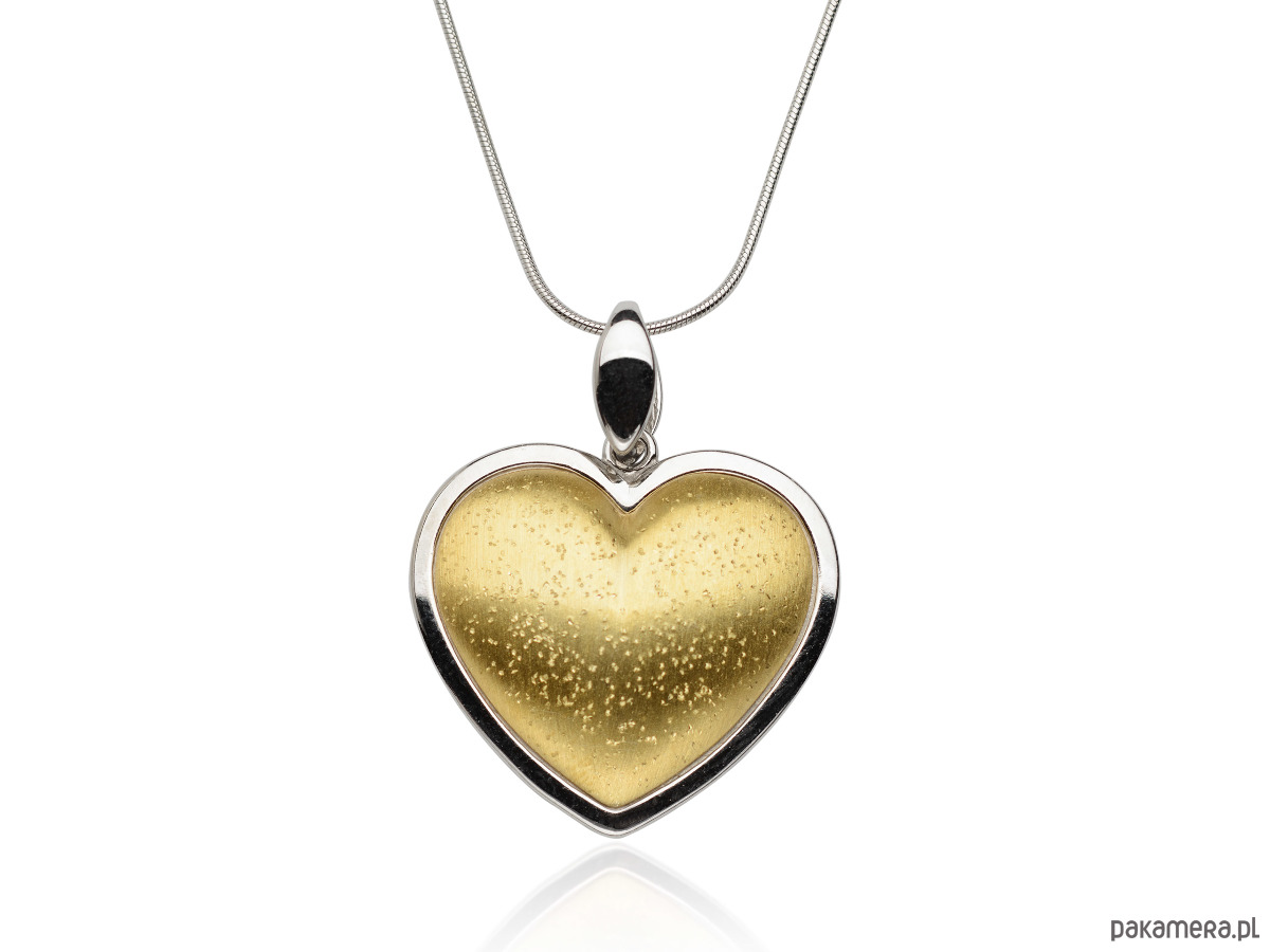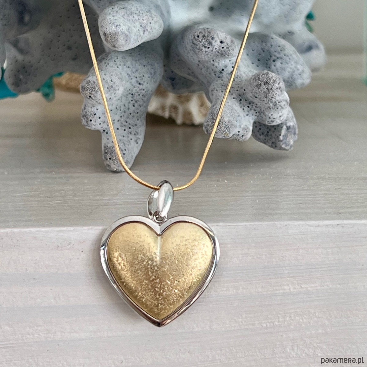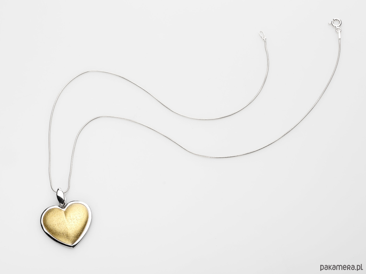 Pozłacane 24-karatowym złotem serce wykonane ze srebra na złotym łańcuszku. Serduszko jest pulchniutkie z jednej strony i zdobione iskrzącym się złotem. Wyraź swoje uczucia perfekcyjnie wykonanym dodatkiem.