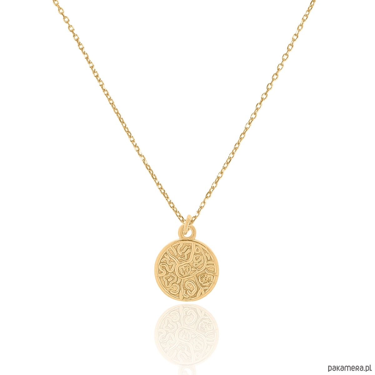 Naszyjnik srebrny pozłacany z monetą z dwustronnym wzorem. Całość wykonana ze srebra 925 pokrytego 24 karatowym żółtym złotem.